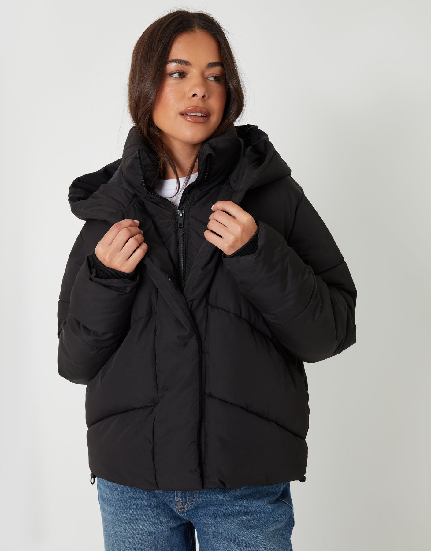 Stay warm and stylish this season with this hooded puffer jacket from Threadbare.