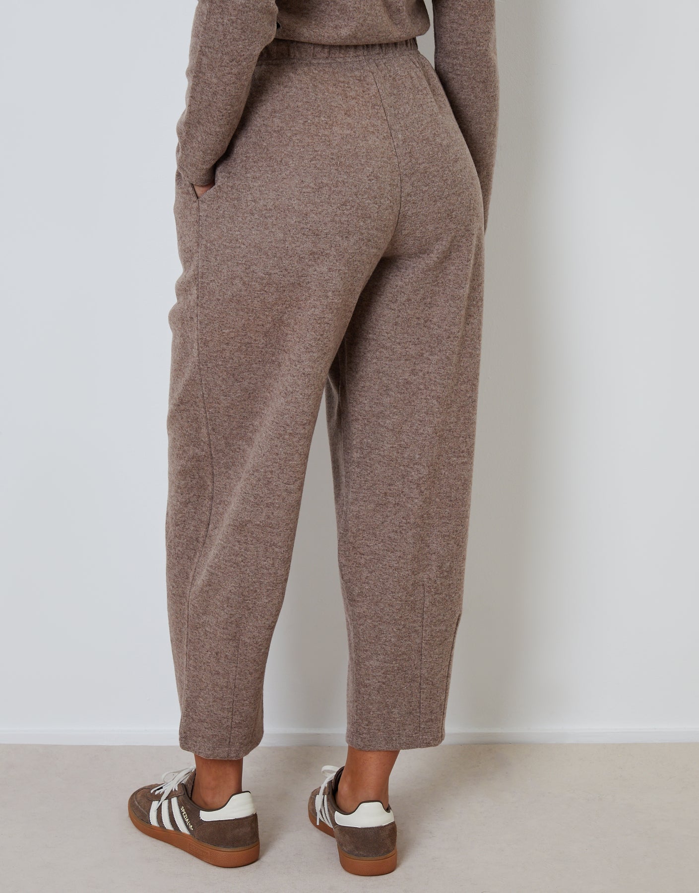Brown High Waisted Ribbed Barrel Leg Joggers
