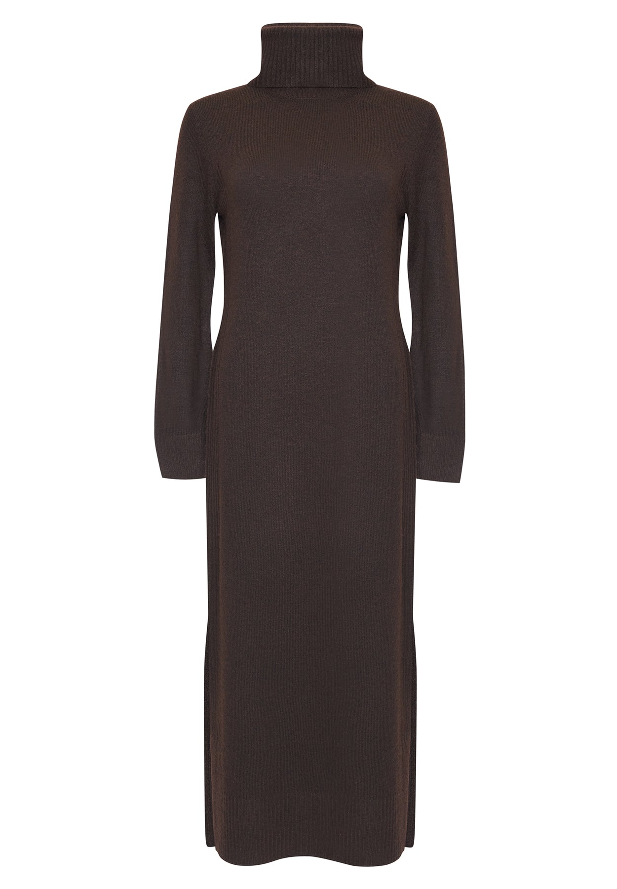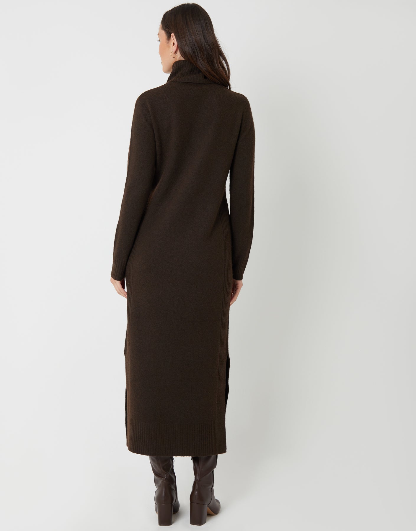 Chocolate Brown Knitted Roll Neck Maxi Dress