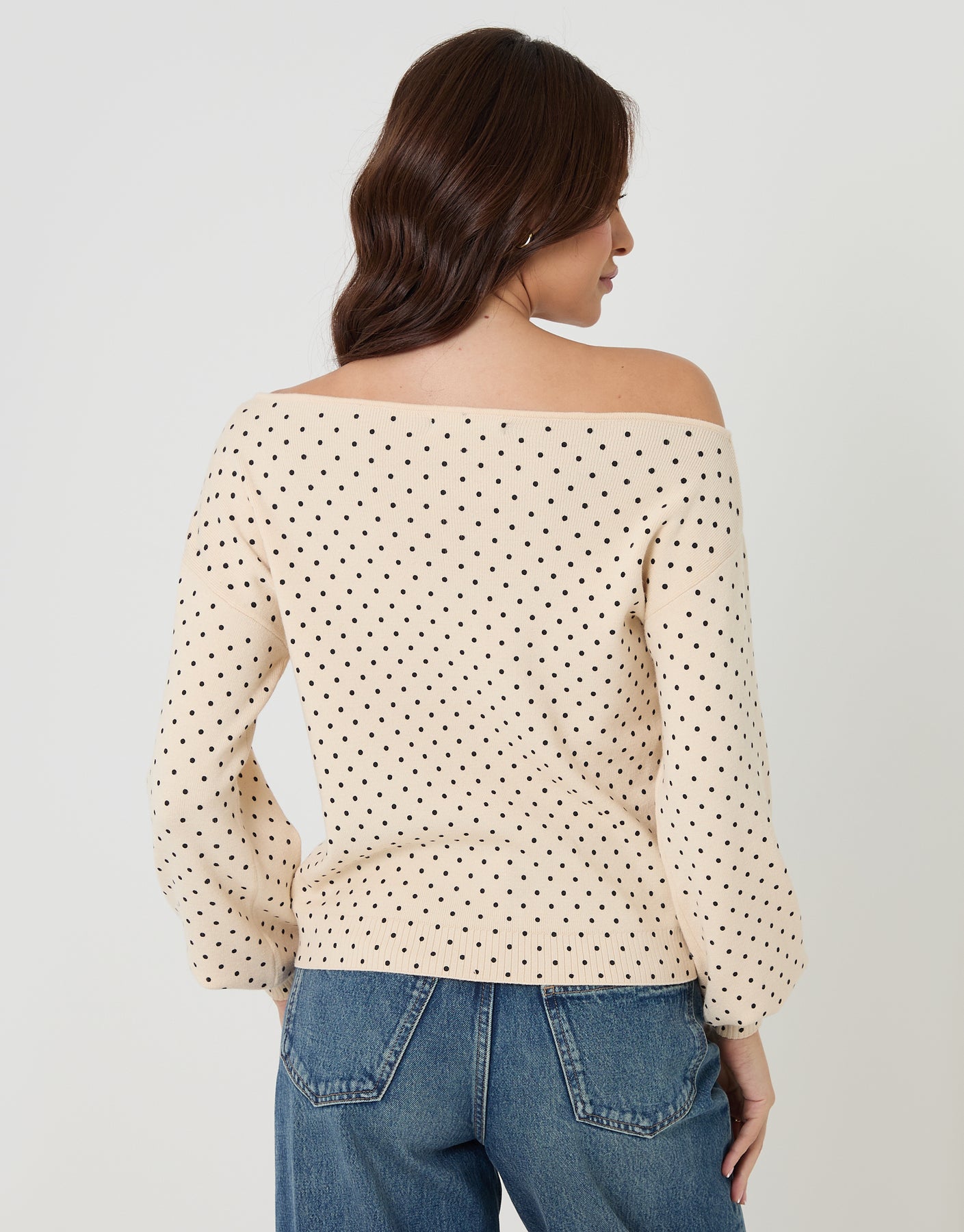 Mono Polka Dot Soft Slash Neck Jumper