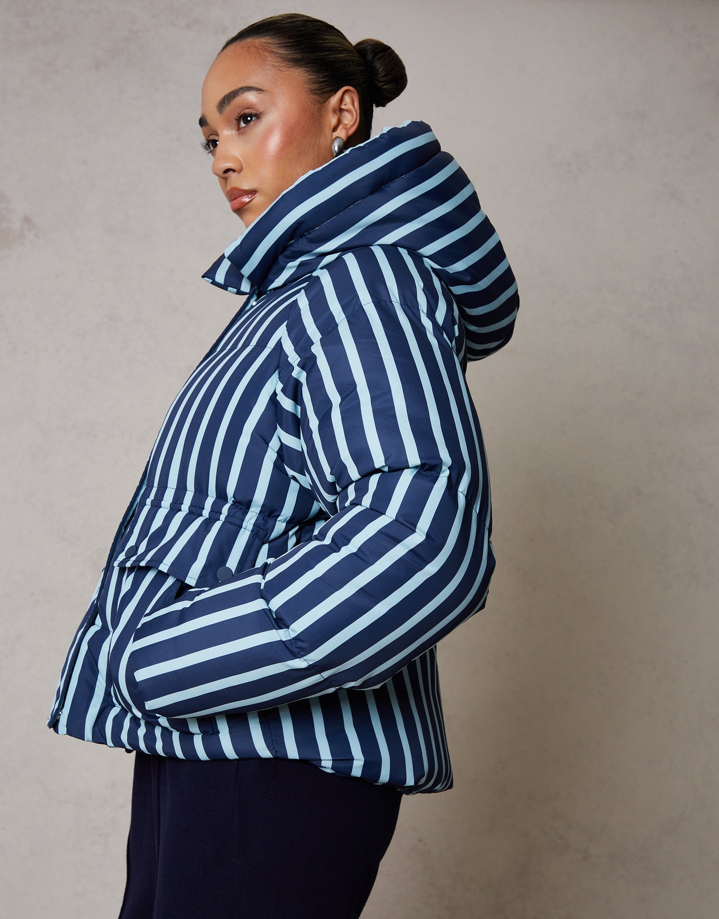 Navy Stripe Hooded Padded Jacket