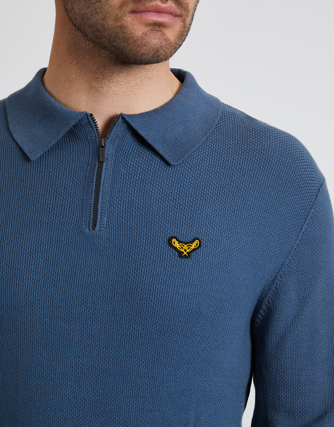 In a polo shirt style with a metallic quarter zip, this jumper is an elevated basic piece for your smart casual wardrobe.