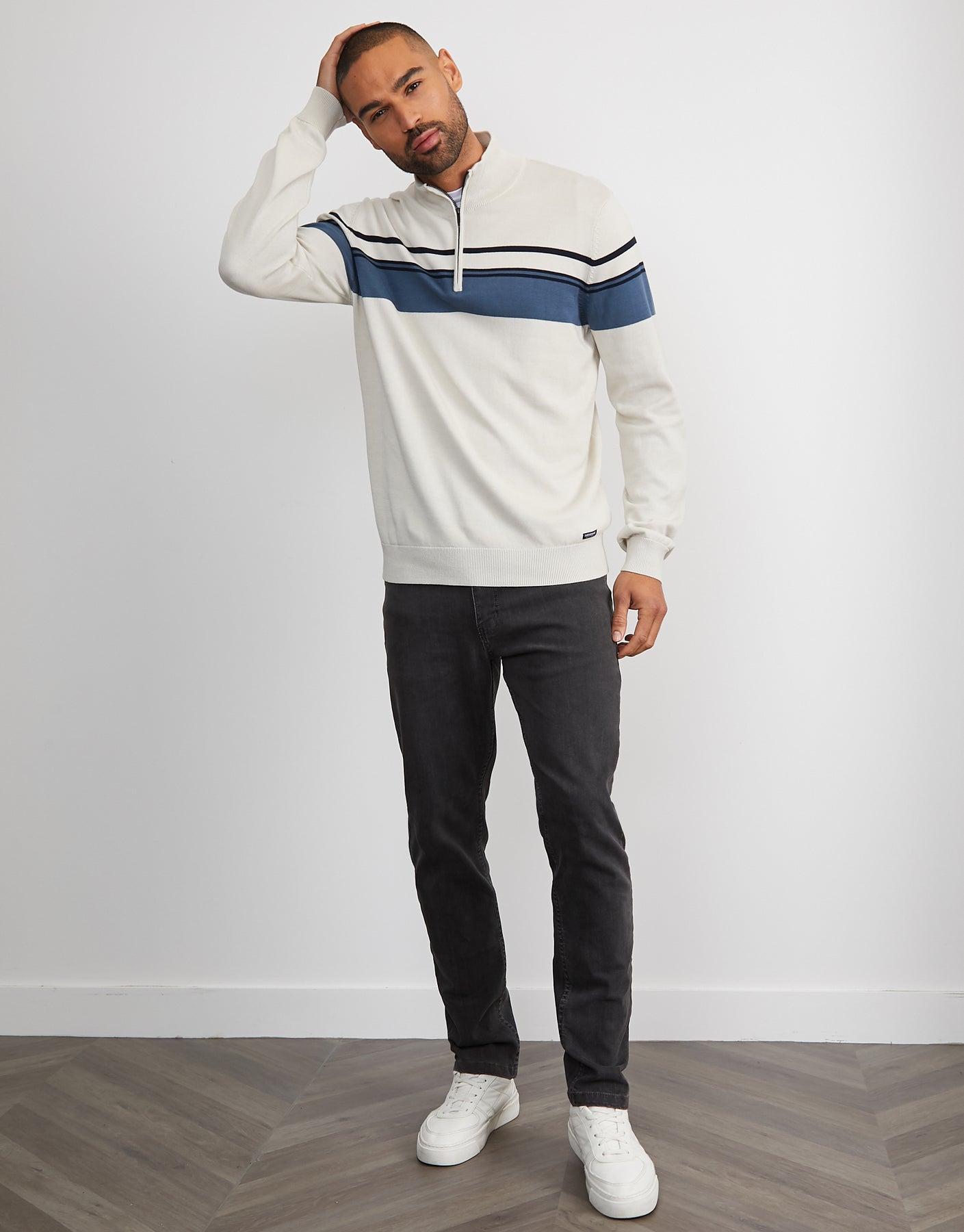 Update your essential knitwear with our Threadbare colourblock jumper with a quarter zip.