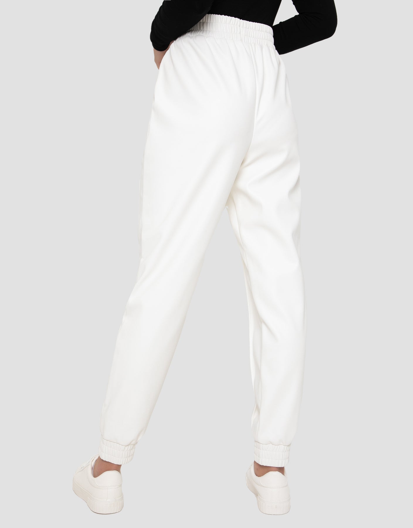 Cream PU Leather Joggers