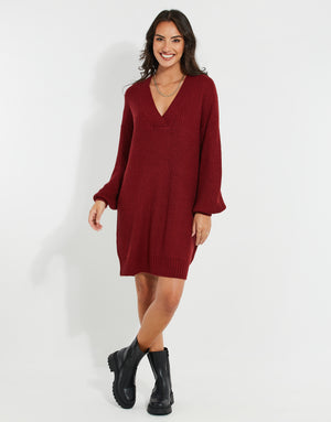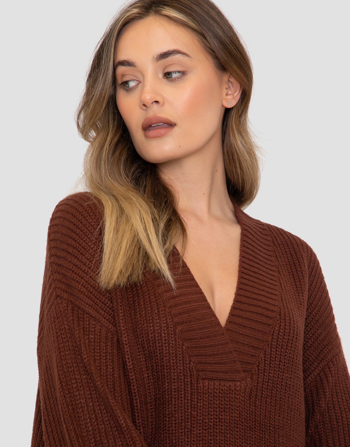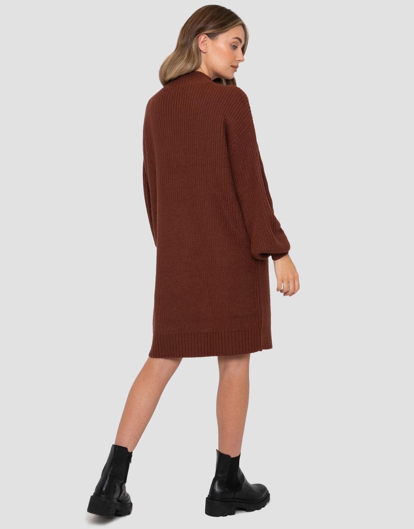 Hit the all-brown trend in the cherry mahogany colour and show off your style in a slouchy sweater dress that’s simple to style. Cut in a relaxed fit with oversized balloon sleeves and V neckline, you’re sure to look and feel cosy - the sought-after blogger-worthy combination that ticks the streetstyle and comfort boxes.