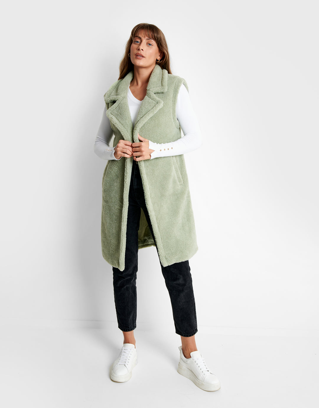 Elevate your outerwear with our Threadbare maxi gilet, the ultimate faux borg style that's on trend for this season.
