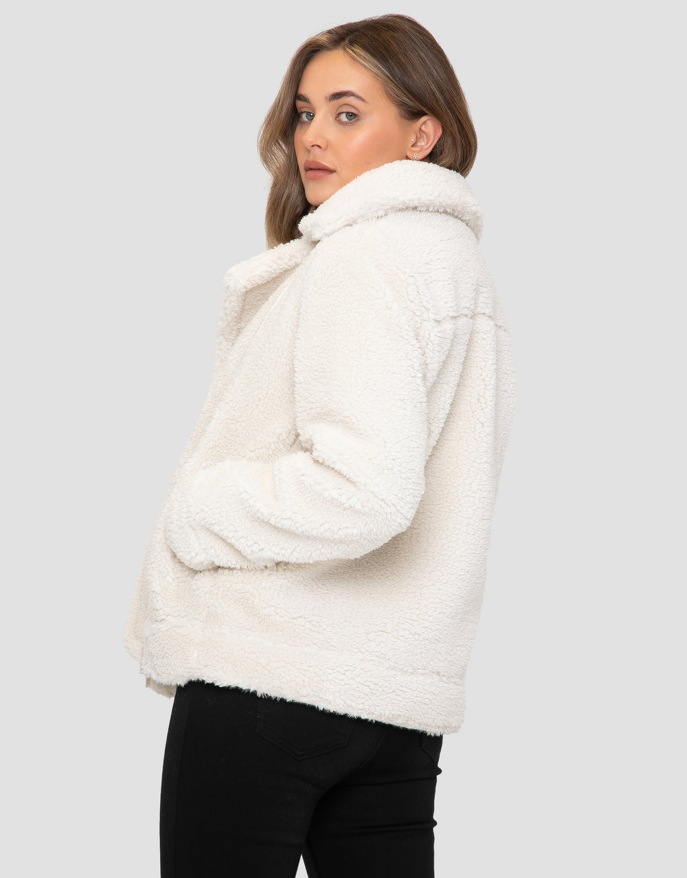 Dress it up or dress it down, but most importantly, look trendy while staying warm in this faux borg biker style jacket. Features classic biker style collar, angle zip fastening, two zip fastening front pockets and ribbed elasticated sleeve cuffs and hem. Made from super soft polyester fabric.