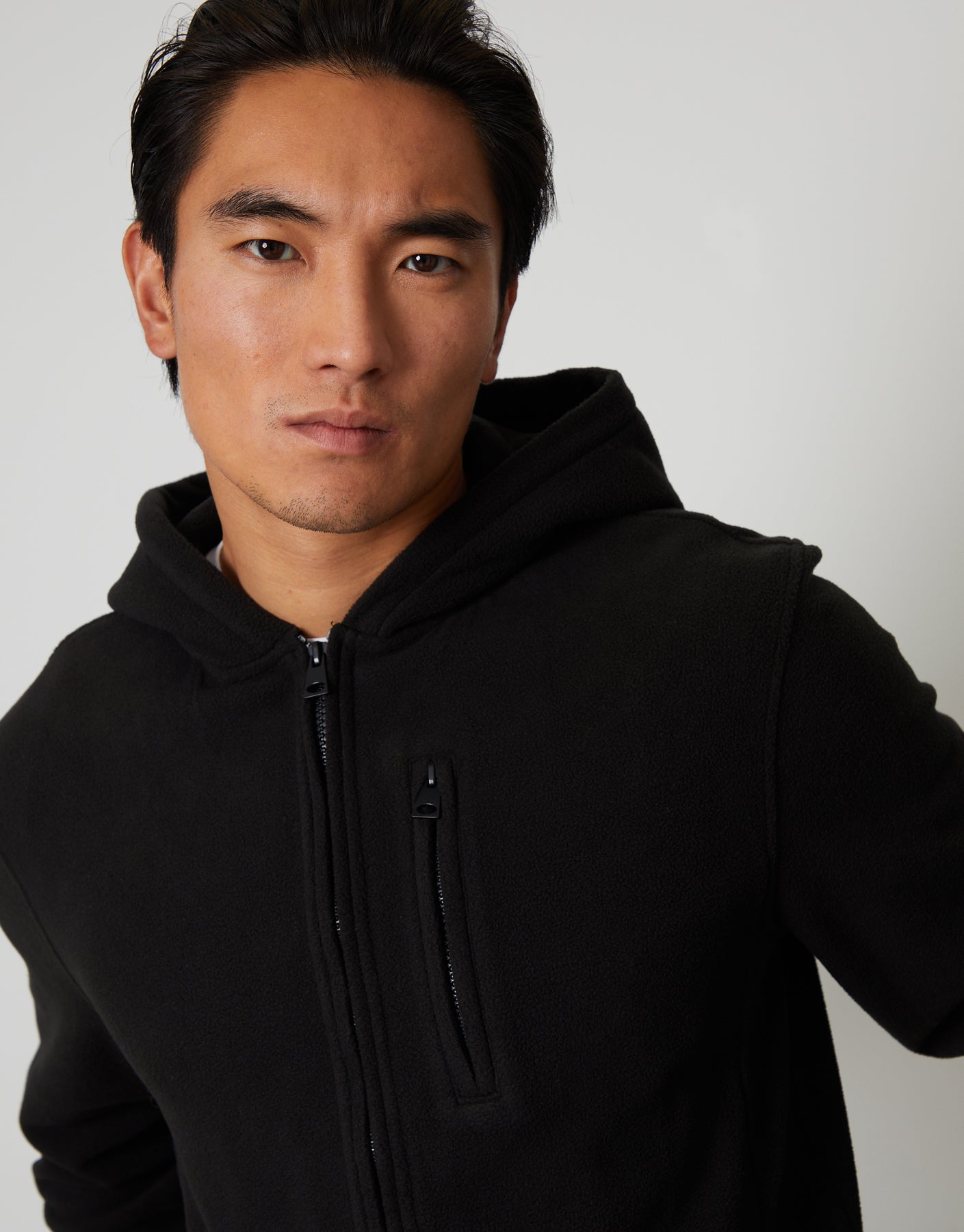 With long cuffed sleeves, hood and cut in a regular fit, our fleece locks in warmth for those cooler days and also features a handy zip-up chest pocket as well as two side pockets. Made from microfleece, this fleece hoodie is a great option for wearing under one of our winter coats to brace the cold in style.