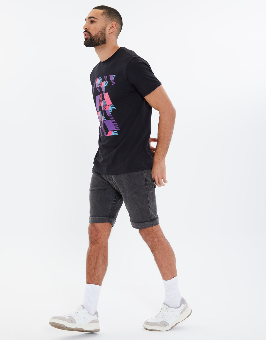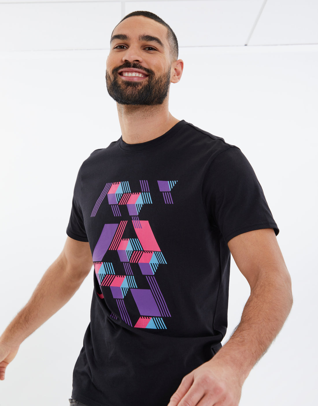 With a purple, blue and pink graphic print to the chest, this short sleeve t-shirt has a round neck, and is finished with our classic Threadbare woven label above the hem.