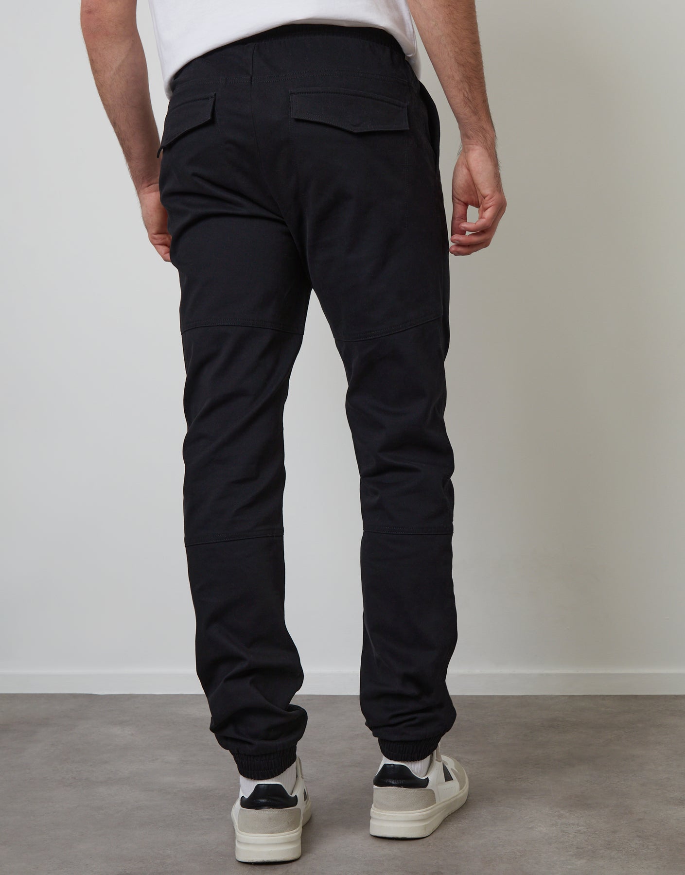 These jogger like trousers are the answer if you're after an alternative pair of trousers to complete your collection. With two side pockets and two back flap pockets, you're fully kitted out. An elasticated waistband with drawcords, cuffed hem and stretch fabric finish this easy-to-style pair.