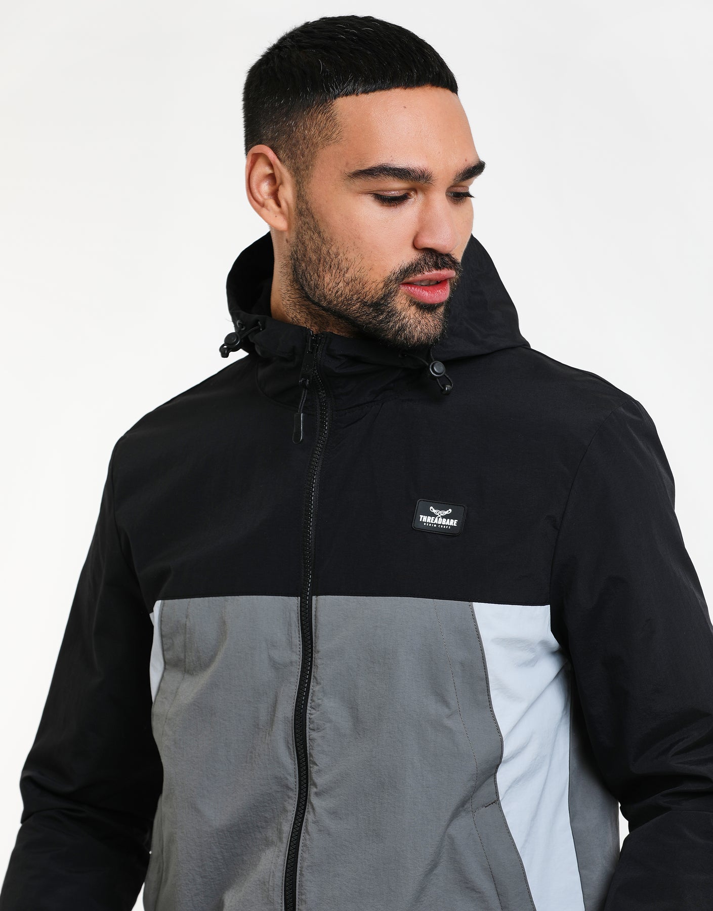 Bring sports luxe to your wardrobe with this Threadbare black and grey colourblock jacket.