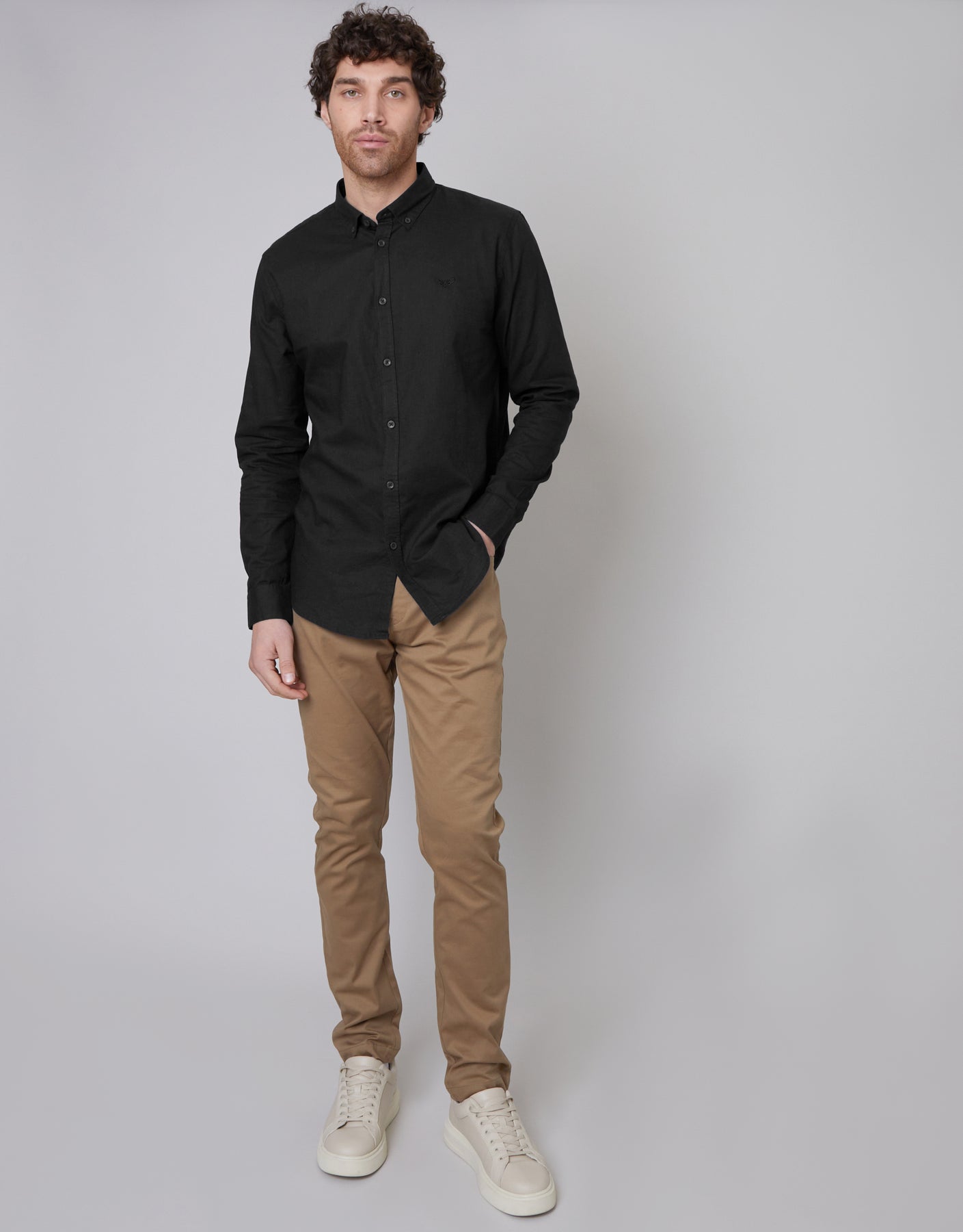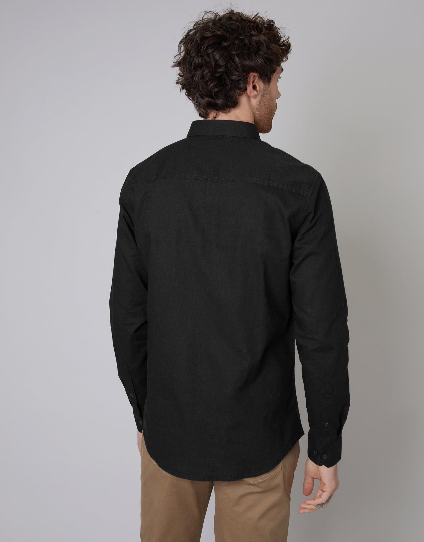 Black Long Sleeve Slim Fit Linen Blend Shirt