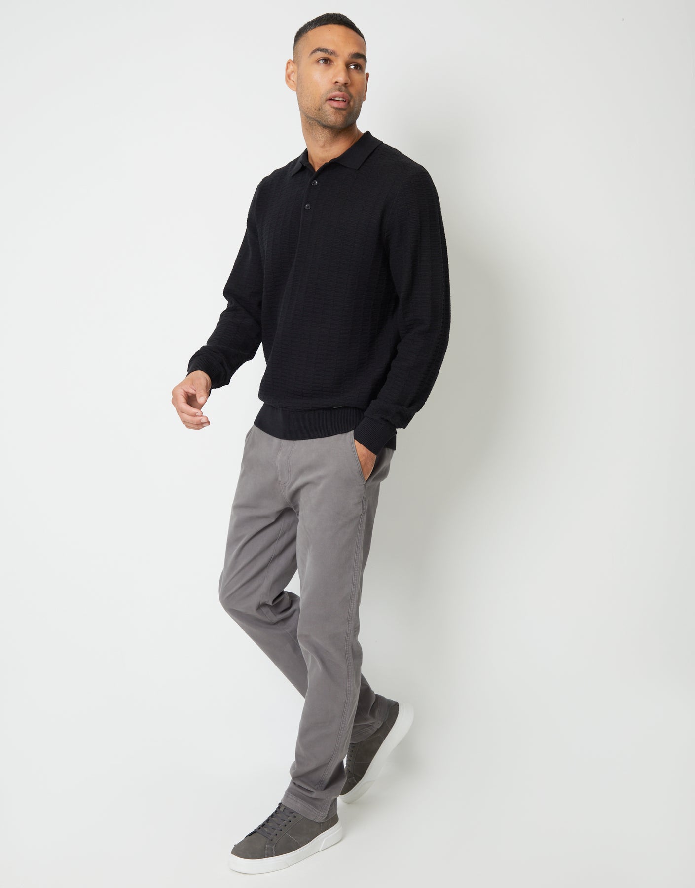 Made from a soft cotton blend in a textured knit, this jumper has ribbed cuffs and hem for comfort, and a Milano collar with three branded buttons.