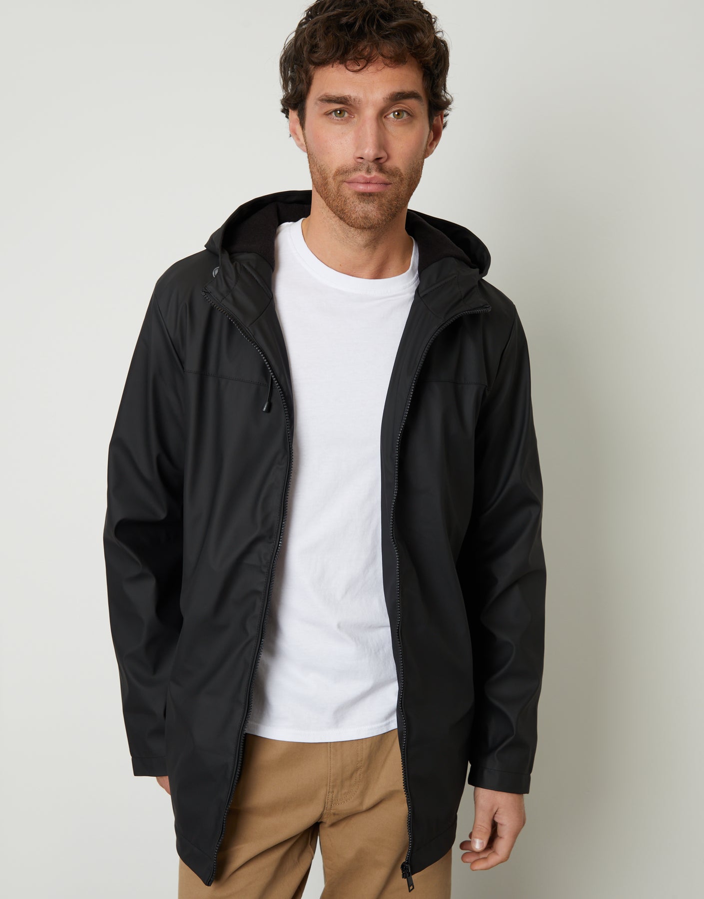 Black Microfleece Lined Hooded Rubberised Raincoat