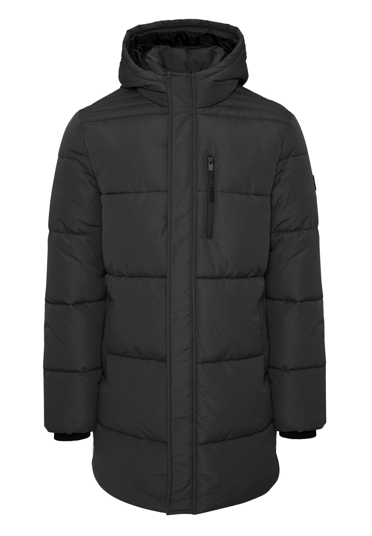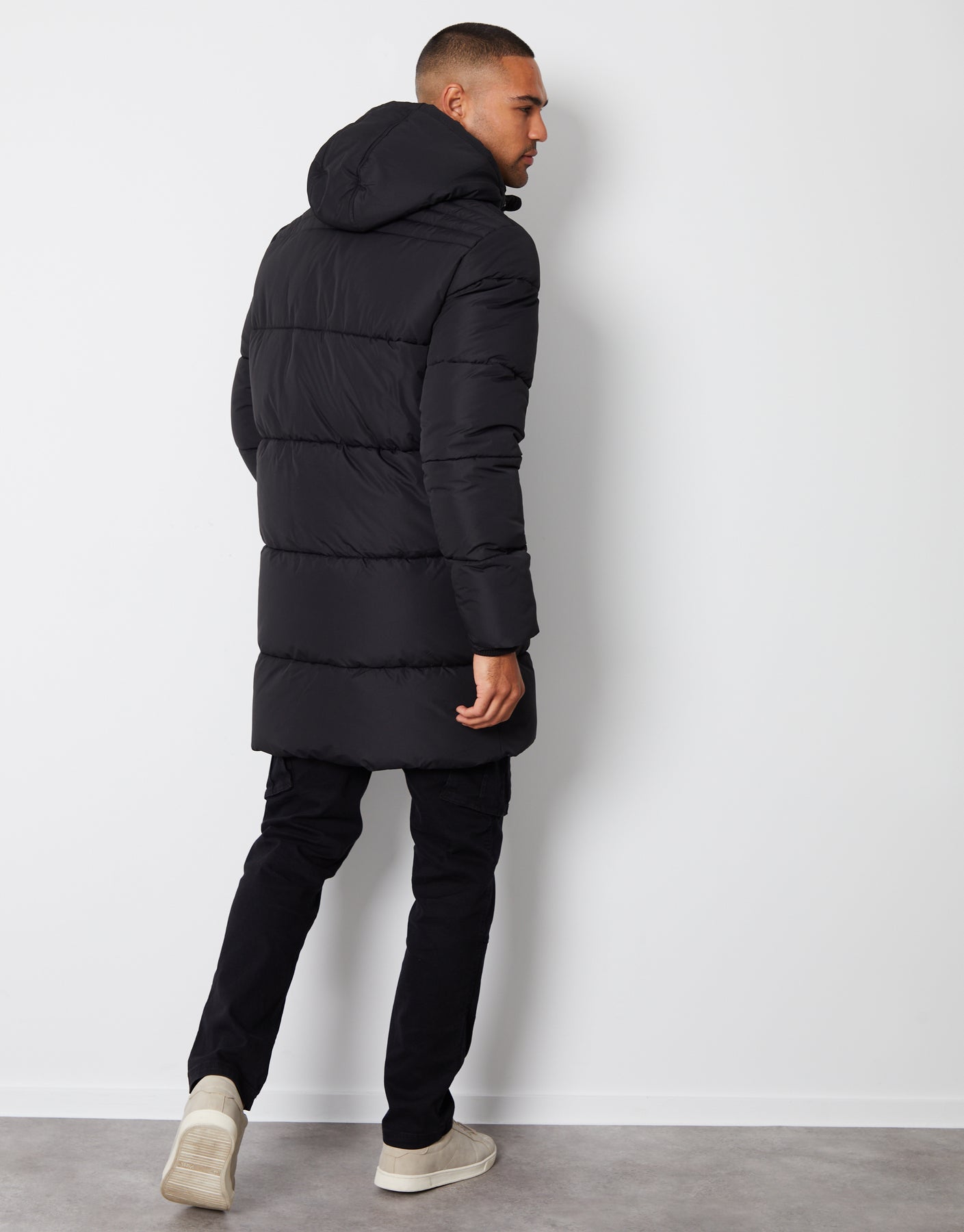 Black Showerproof Hooded Longline Puffer Jacket