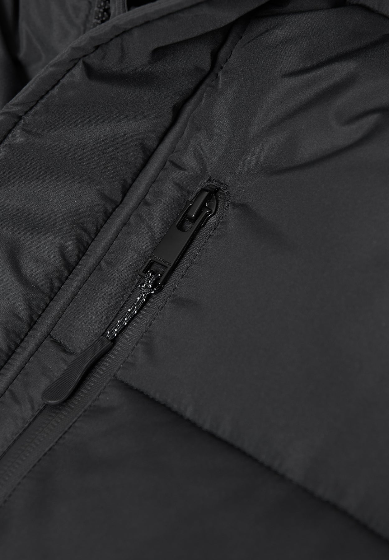 - 2-way front zip with concealed snap fastening and storm guard