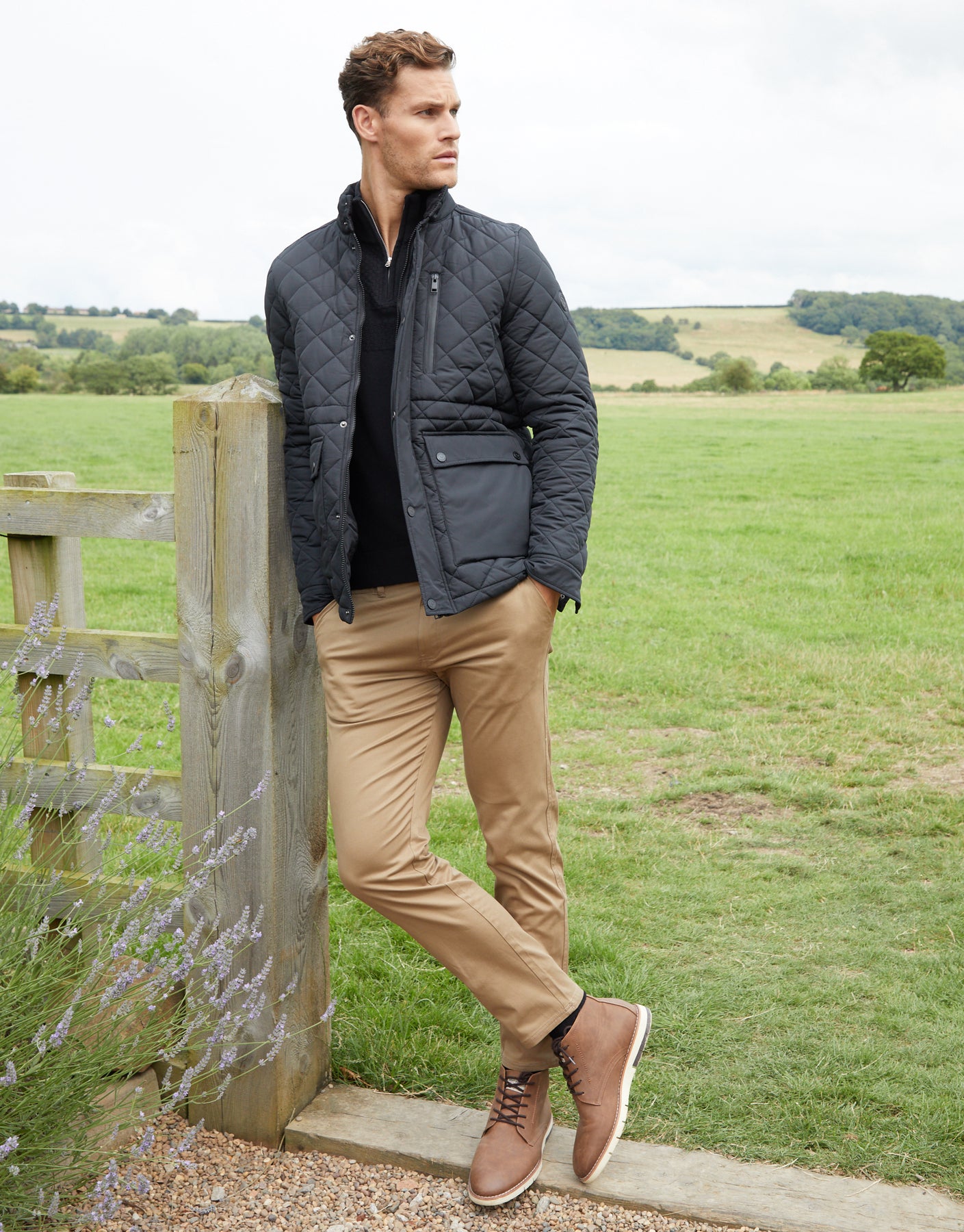 The diamond quilting is lightly padded, and this jacket has a corduroy lined stand up collar and adjustable popper fastening cord lined cuff to keep you cosy, as well as a bungee cord around the waist. Finished with a branded rubber badge on the arm.
