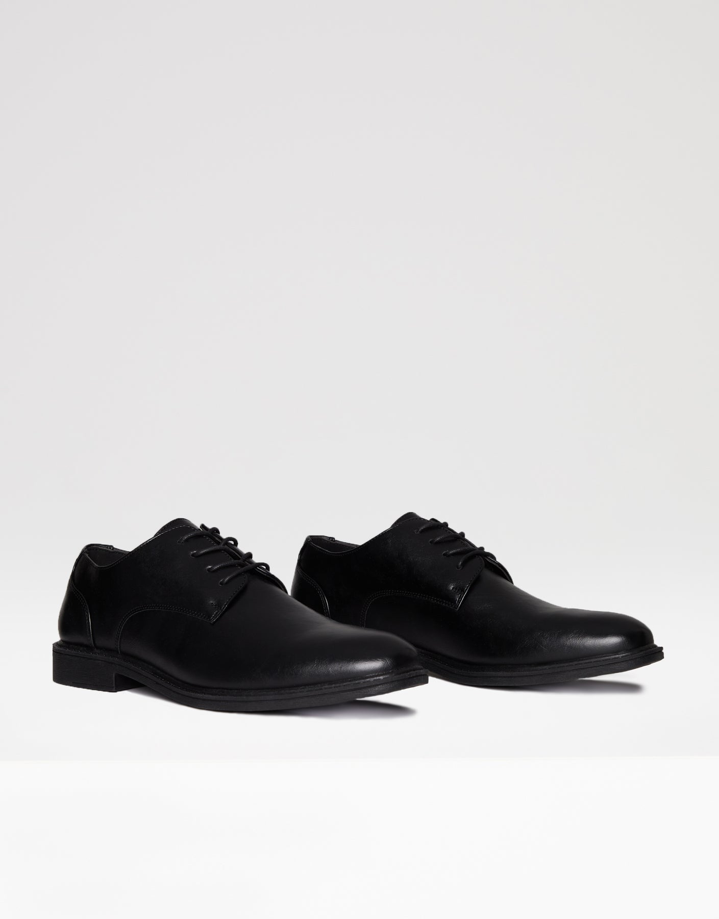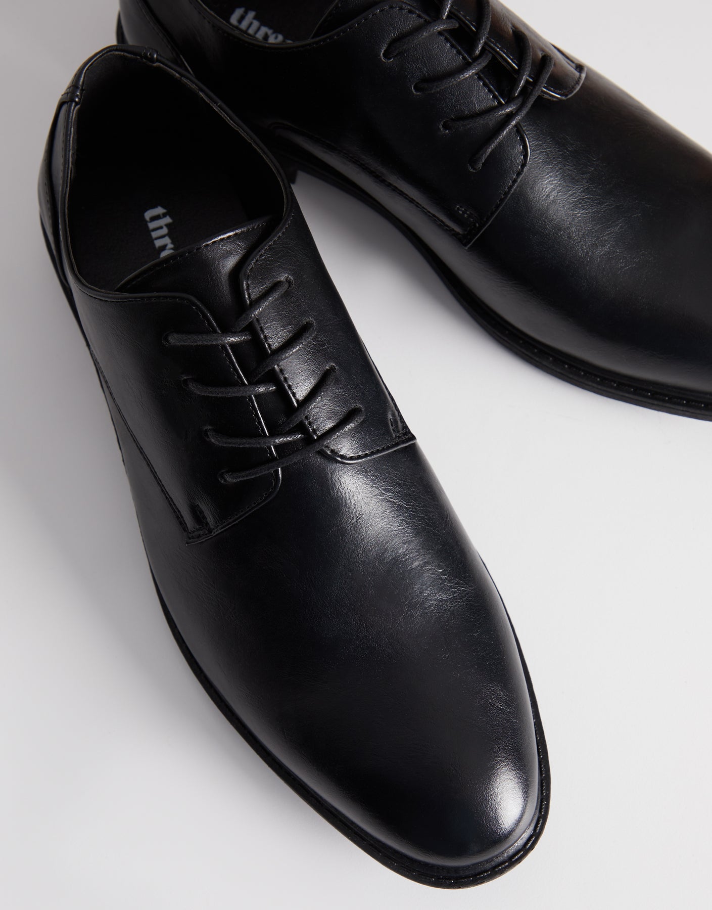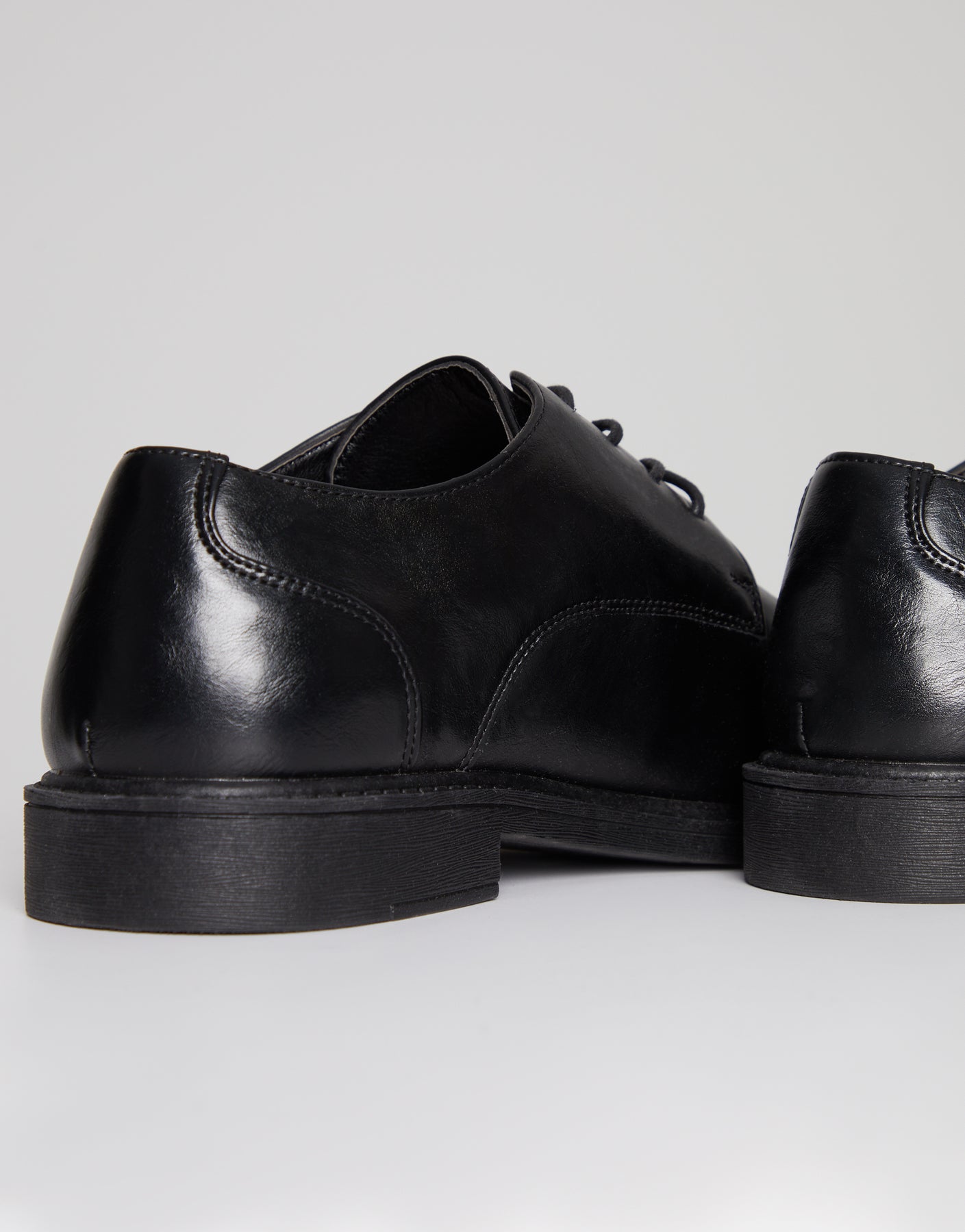 Made from a sleek finish faux leather, these premium feel formal shoes lace up, and have sewn on quarters and counters for subtle detailing.