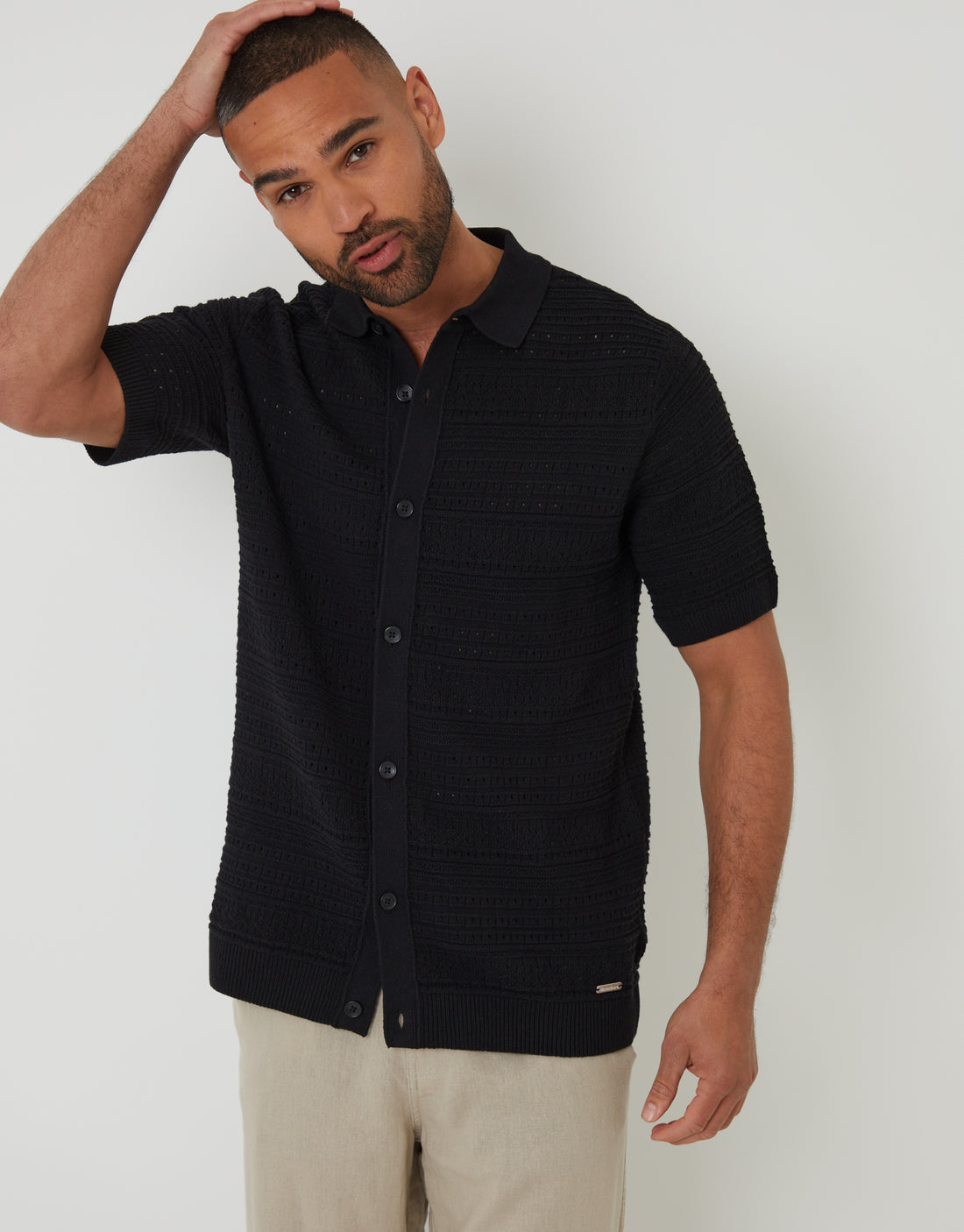 Combine classic style with modern comfort with this knitted button up polo shirt from Threadbare.