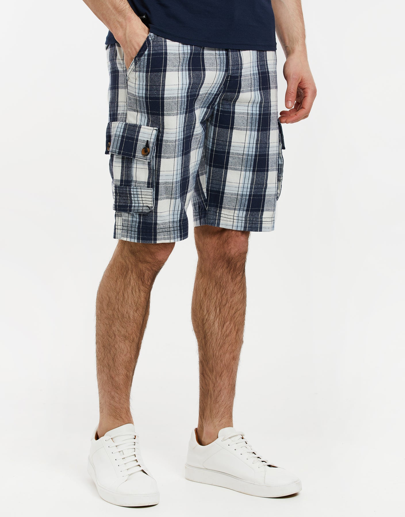 These Threadbare check cargo shorts are designed with a button fastening and a zip up fly for a classic look.