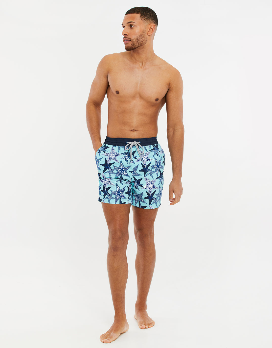 Designed with an all-over starfish print, elasticated waistband and a drawcord finish