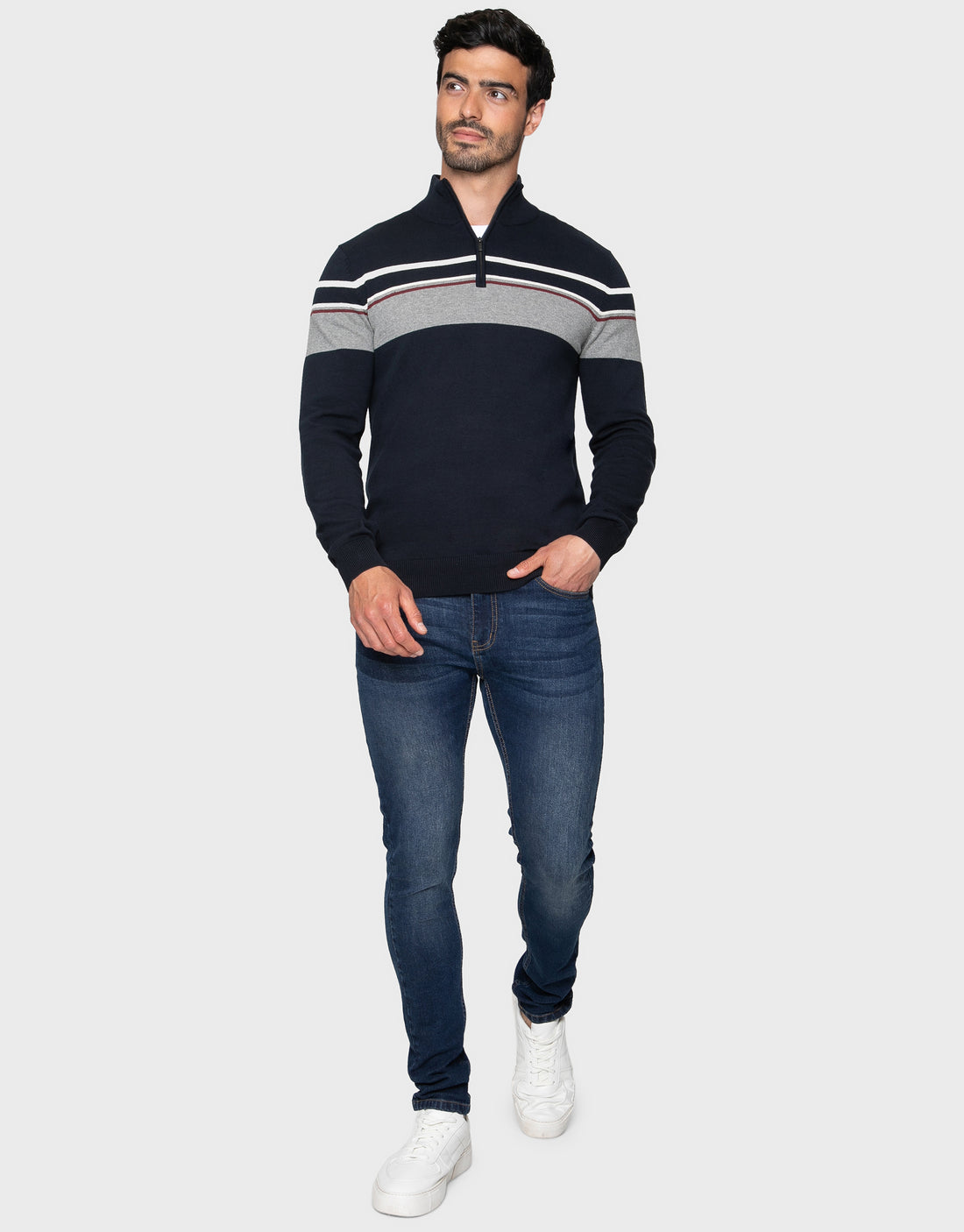 Update your essential knitwear with our Threadbare colourblock jumper with a quarter zip.