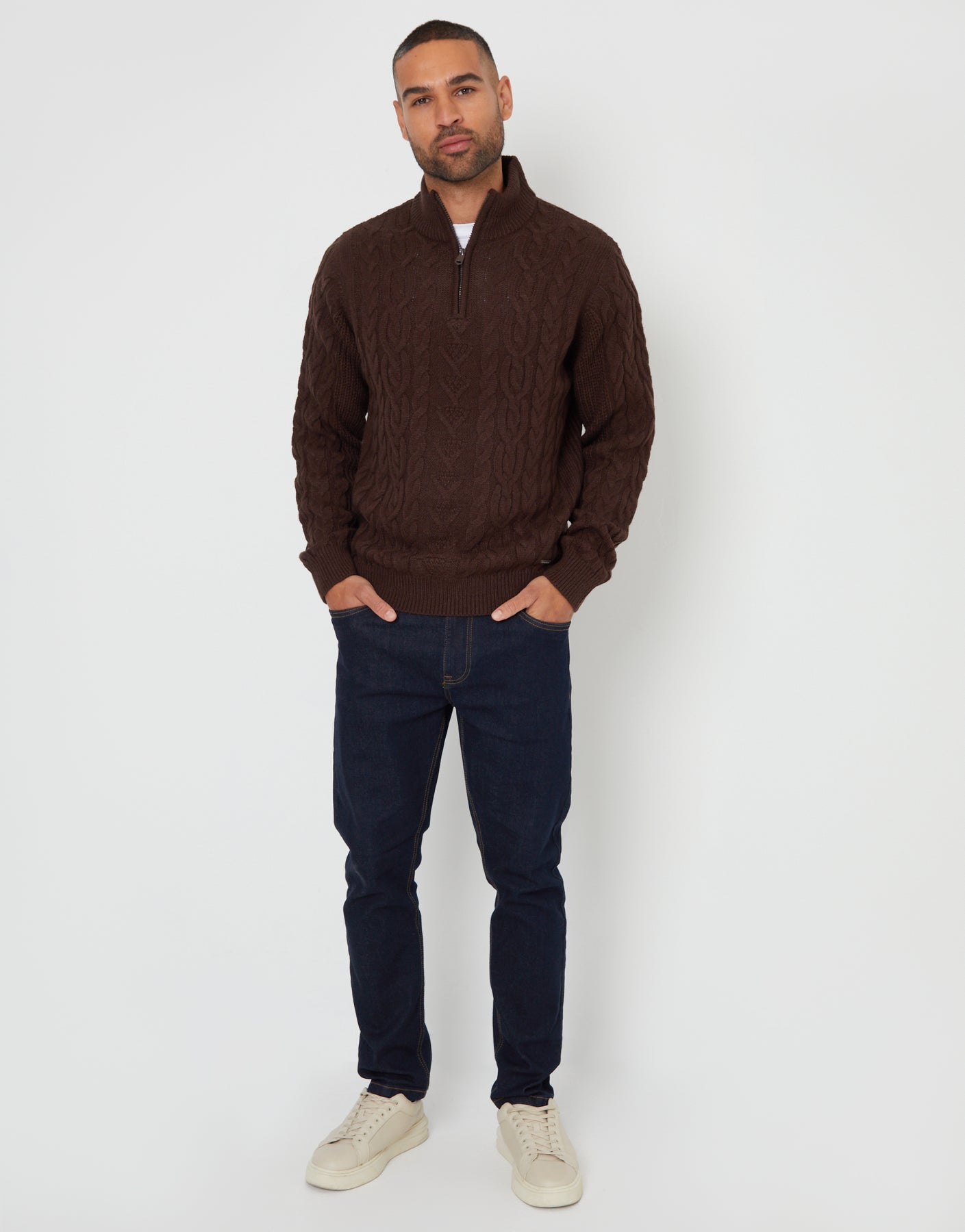 Uplevel your knitwear staples with our Threadbare cable knit quarter zip jumper.