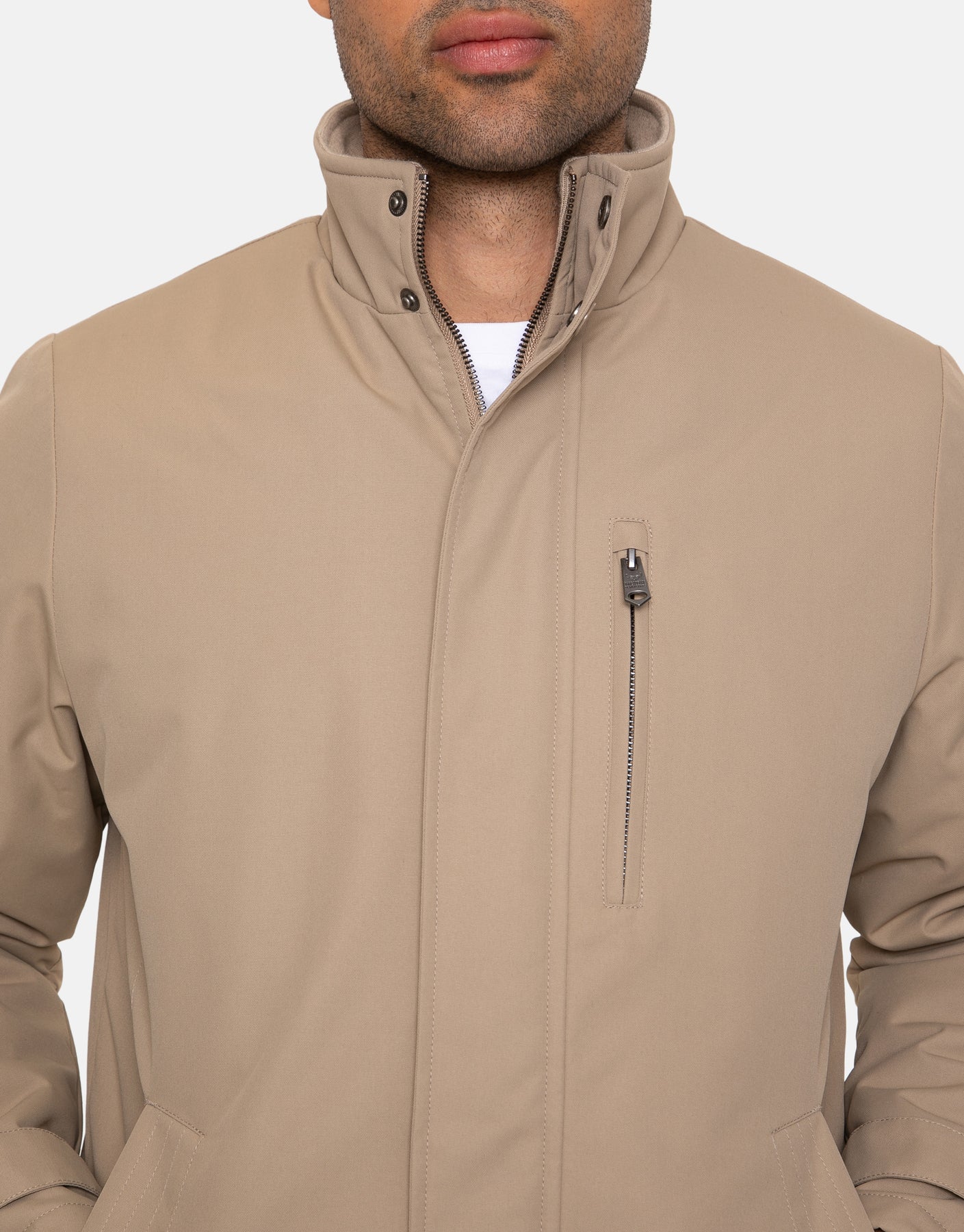 A stylish alternative, this full zip fastening coat has a funnel neck with snap fastening to keep the warmth in, and snap fastening cuffs for added detail. Make use of two side pockets for your hands, an internal velcro pocket and a vertical zip fastening chest pocket finishes off this coat's versatility.