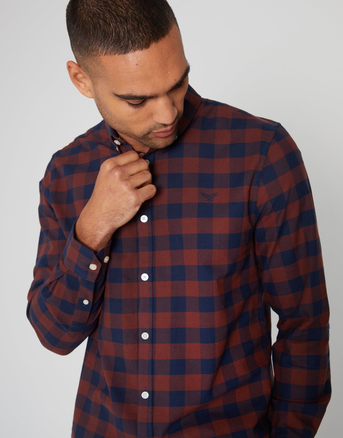 Burgundy & Navy Check Cotton Long Sleeve Shirt