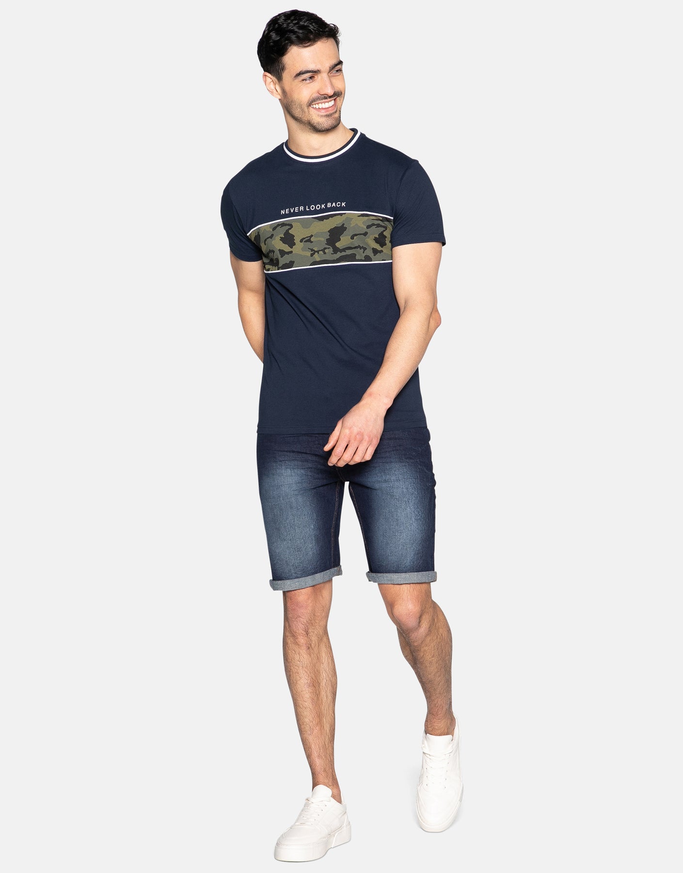 This t-shirt from Threadbare features a camo stripe across the chest. Team up with shorts or jog pants for a great casual look. Other colours available.