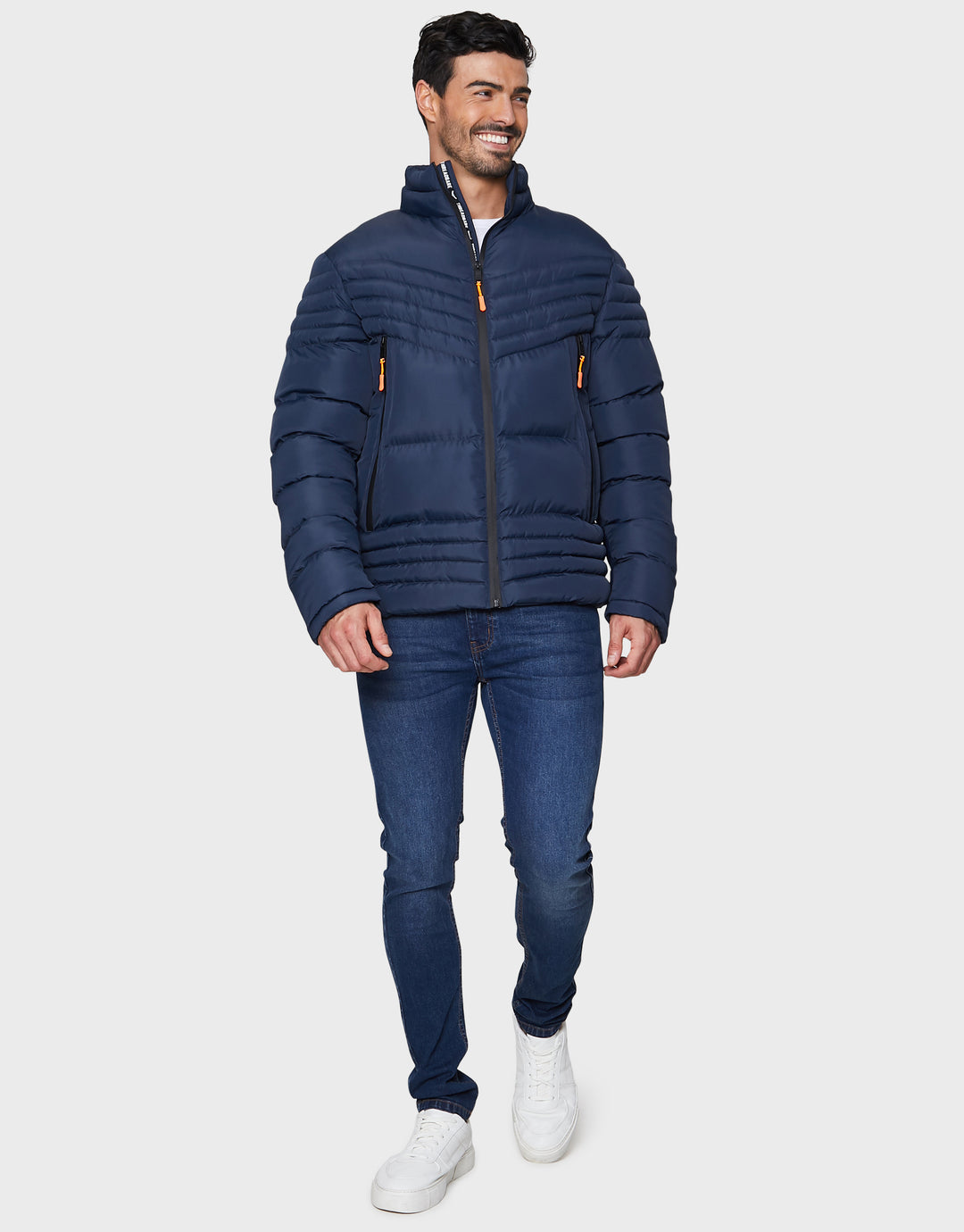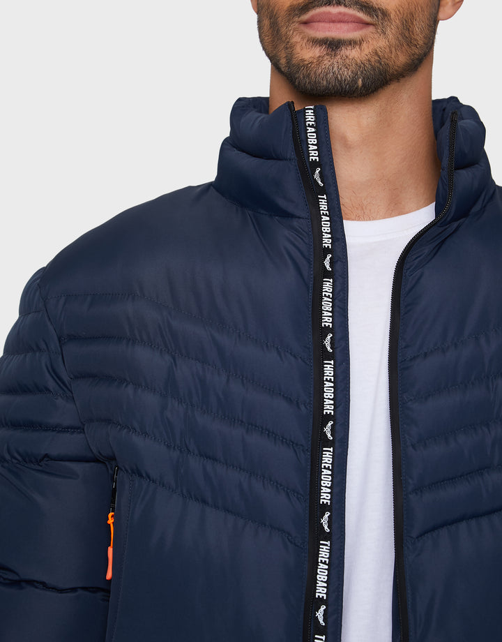 Up the ante in our Threadbare puffer jacket, an essential coat to complete your look.