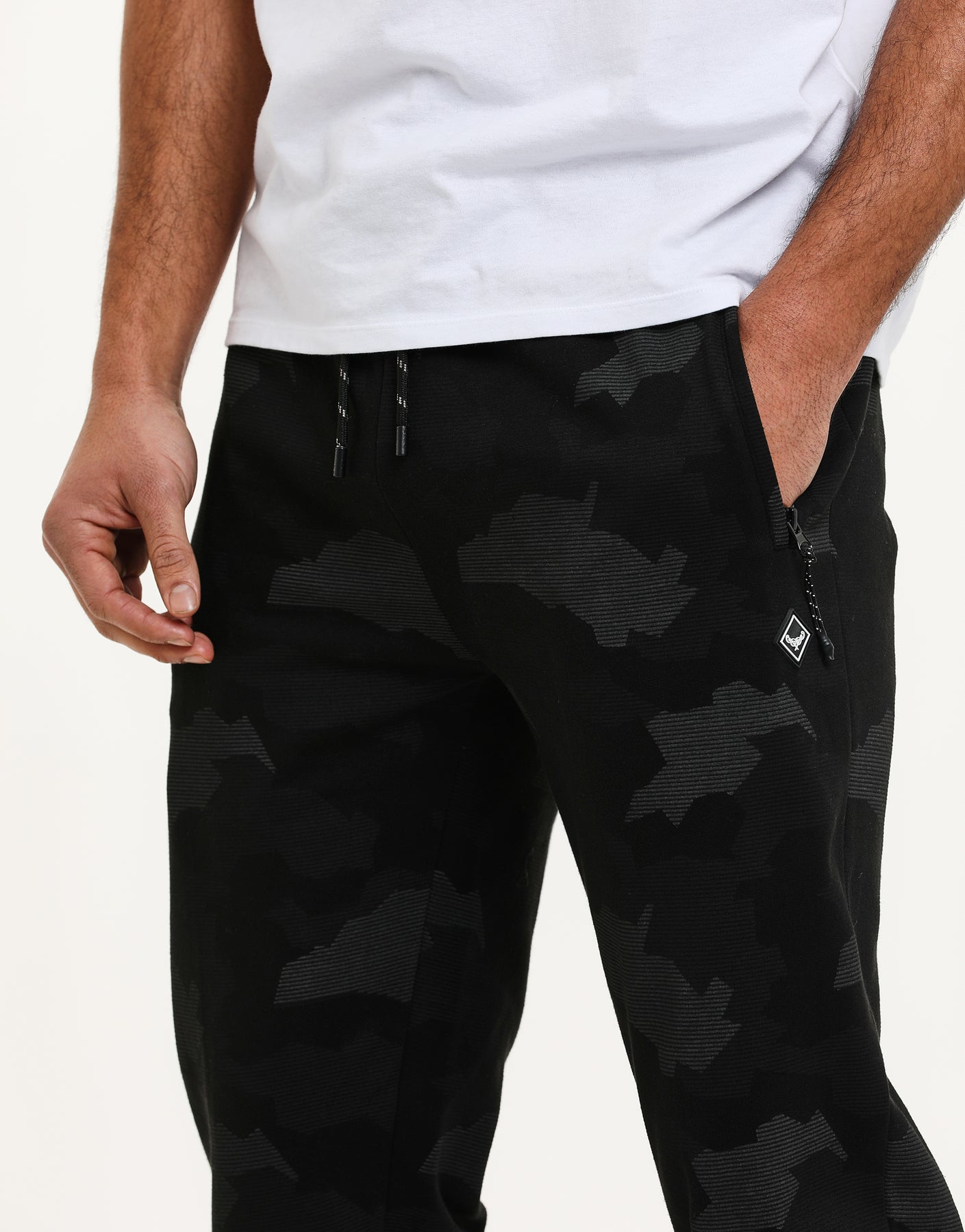 These comfy Joggers from Threadbare are printed all over with a camouflage for high-impact style, an easy piece to add comfort as well as style to your outfit. Features zip pockets, ribbed hem and waistband finished with draw cord and raised rubber Threadbare branding. Also available in other colours and matching sweatshirts.