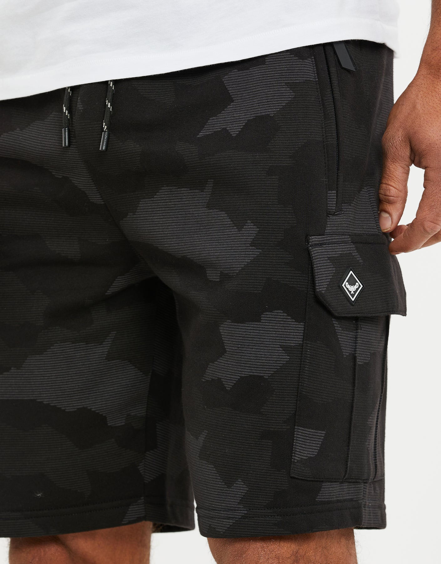Charcoal Grey Camo Cargo Sweat Shorts