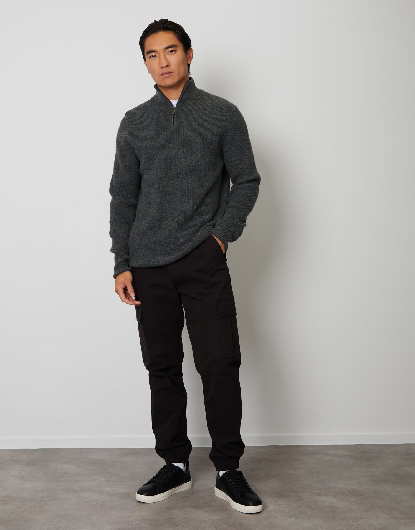 With a stylish high neck and fashioned with a quarter zip, this half-cardigan stitch jumper is an elevated essential.