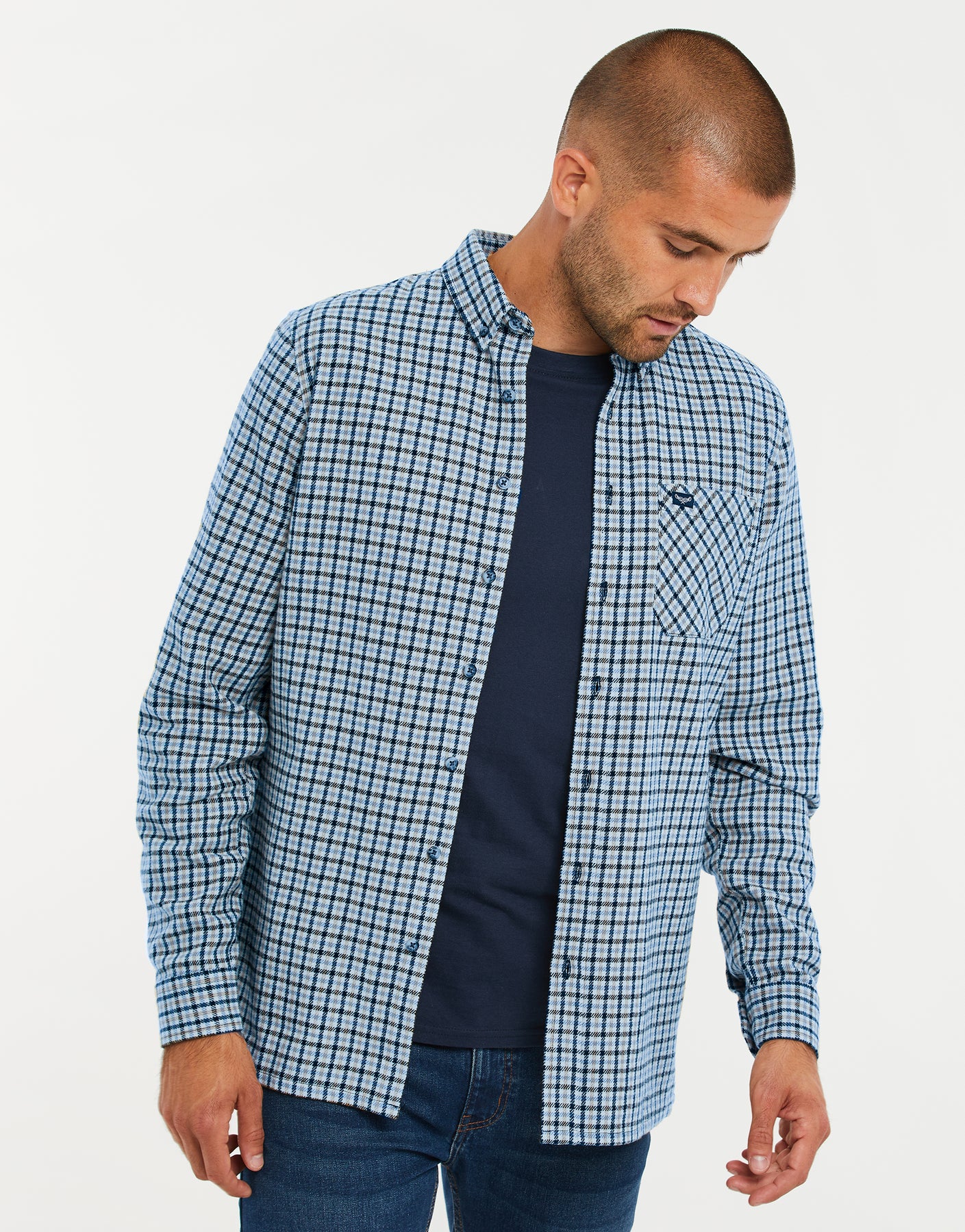 Designed with a button collar and full button fastening, this blue check shirt has button cuffs that you can open to push up the sleeves if you wish. Finished with a chest pocket and Threadbare woven label for coveted brand appeal.