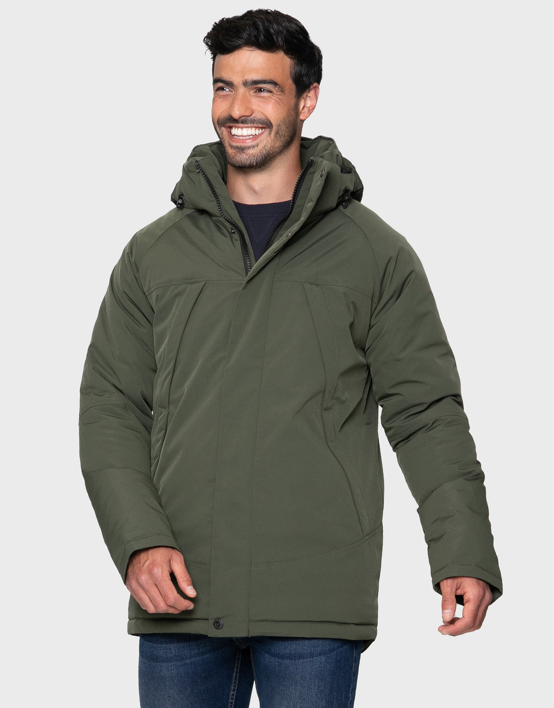 This style includes classic Threadbare badge on the sleeve, high padded collar, branded details.