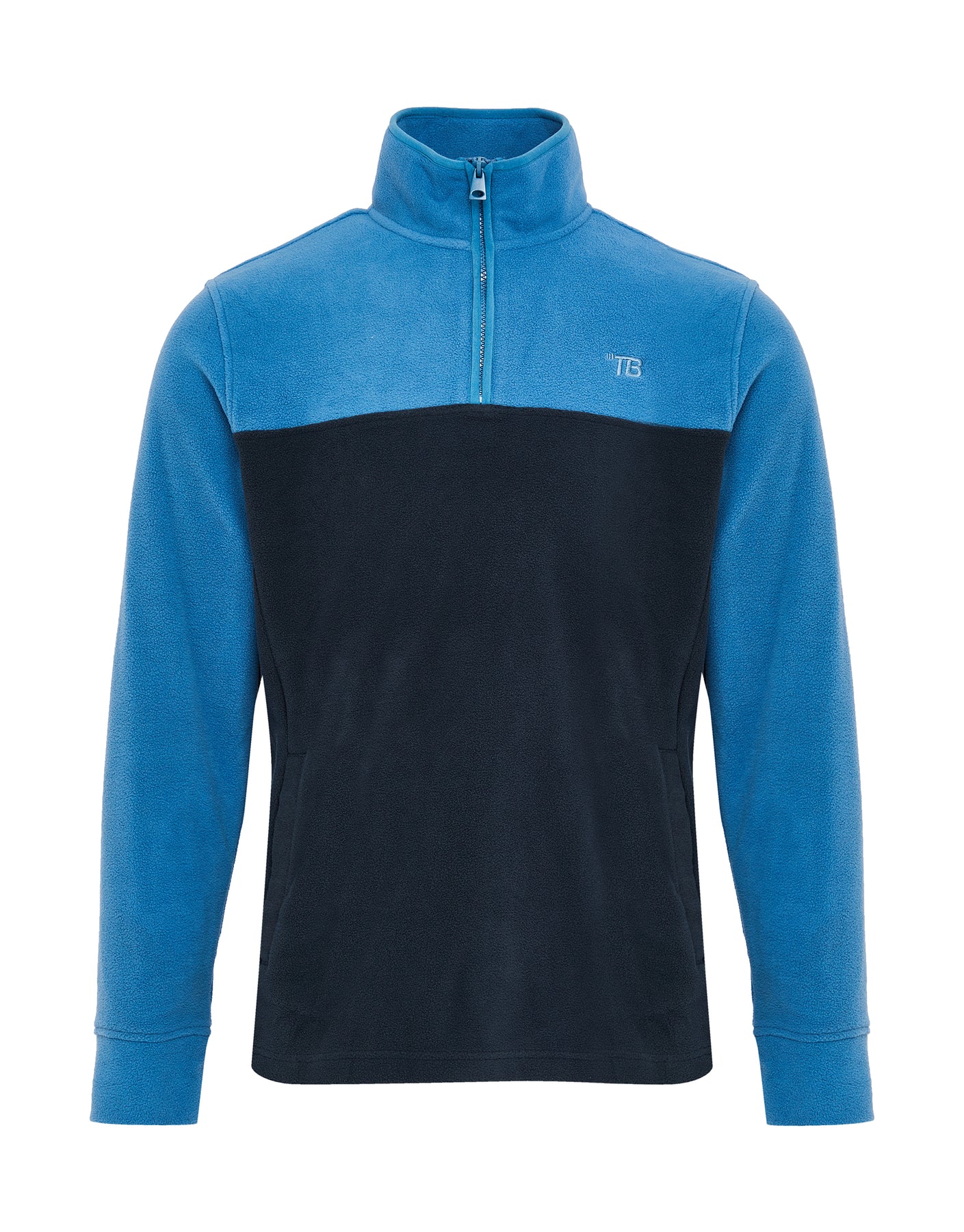 Cobalt Blue & Navy Colourblock Quarter Zip Fleece