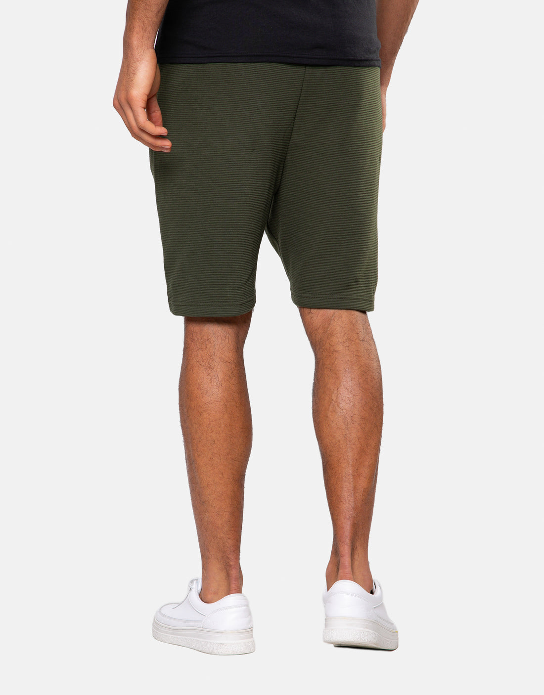 In a ribbed fleece design, these shorts are perfect for warmer summer weather when you're in need of both style and comfort. With two side zip up pockets finished in black, they have a ribbed elasticated waistband and Threadbare branded drawcords for coveted brand appeal. Finished with a back pocket.