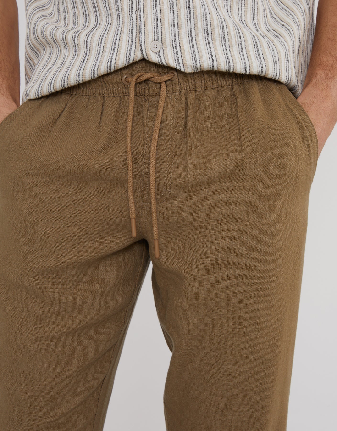 Cut in a regular fit with an open hem and mock fly closure. Linen rich, these trousers will keep you cool and comfortable all day long, and have two side and two back pockets.