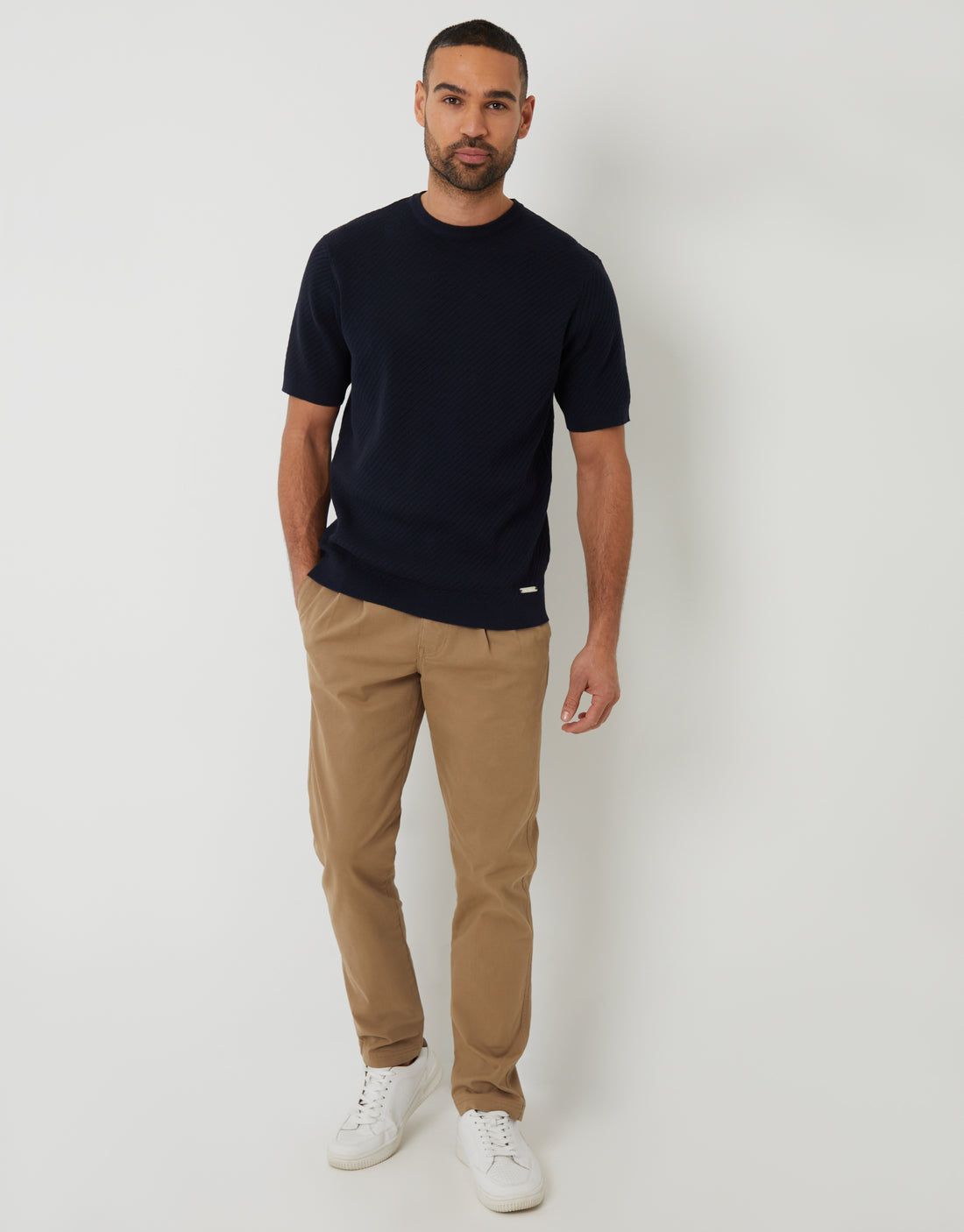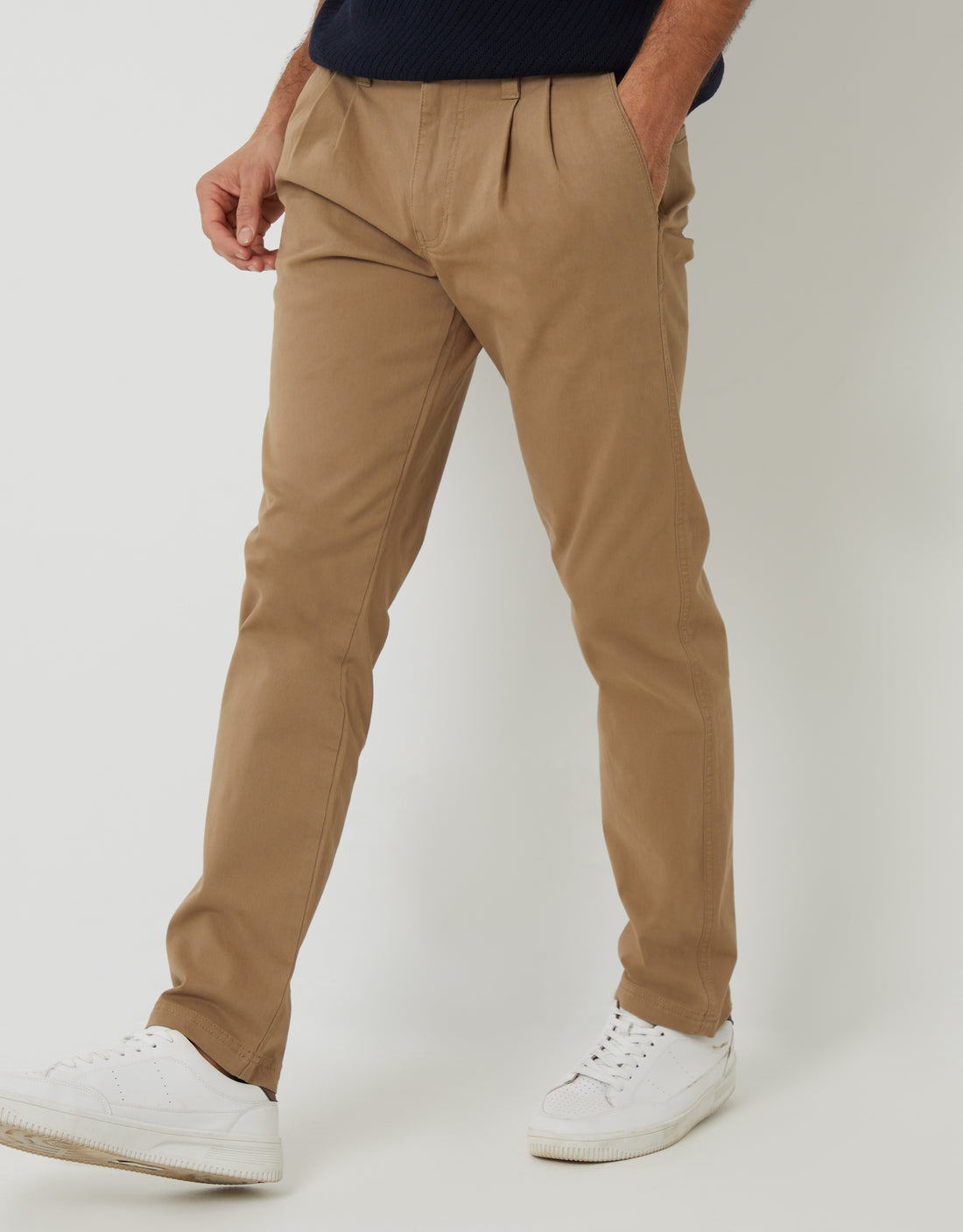 Cut in a relaxed fit, our chinos have a shank button and belt loops to the waistband, and fasten with a functional zip fly. Two back pockets and two side pockets make this a versatile option, whilst pleats and a Threadbare metal tab complete these trousers.