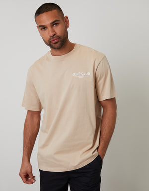 Dark Stone Relaxed Fit Surf Club Graphic Print T-Shirt