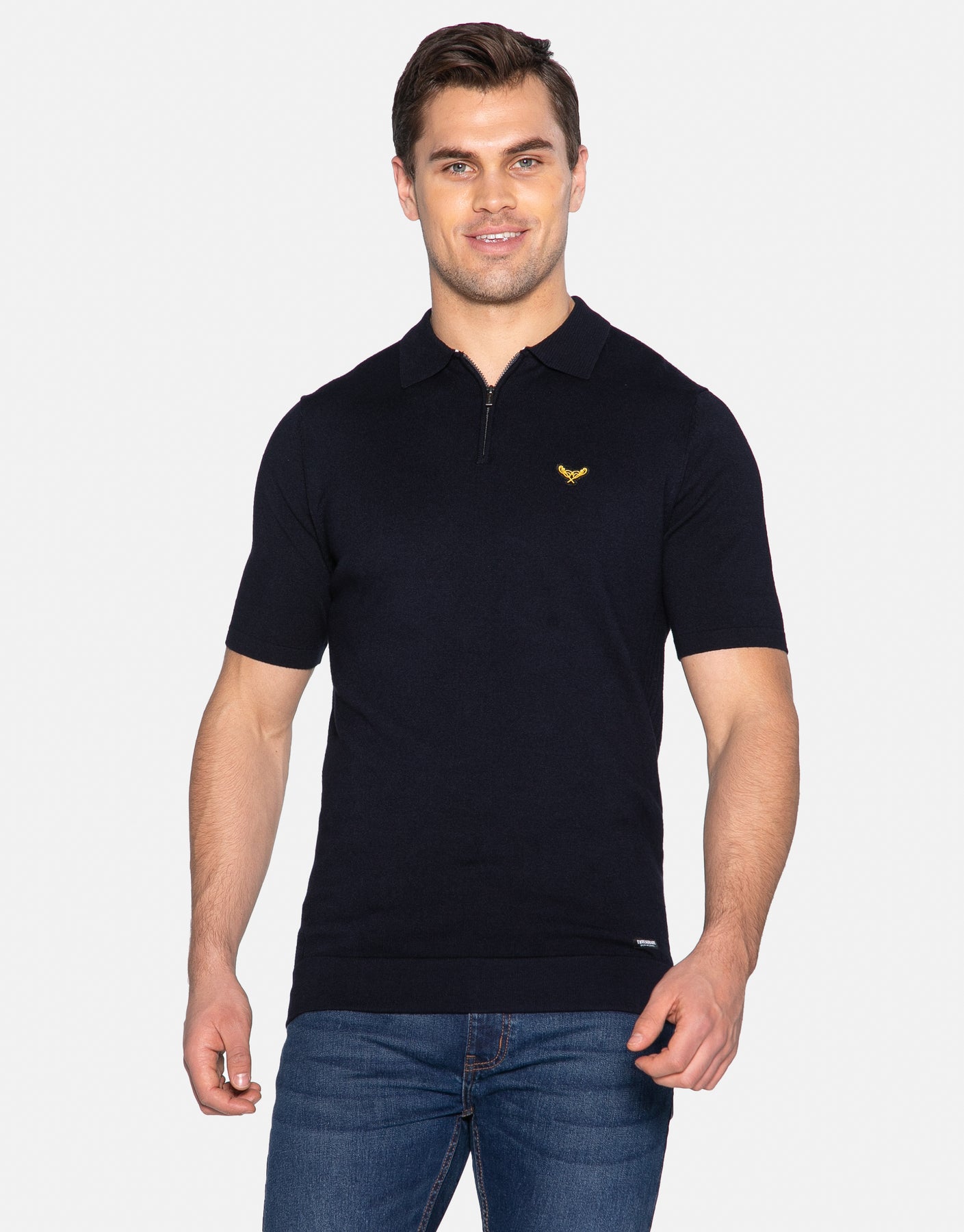 This fine knit, short sleeved jumper from Threadbare features a zipped, knitted polo collar and a ribbed side seam panel. It has the signature Threadbare embroidered logo on the chest and branded zip. Other colours available.