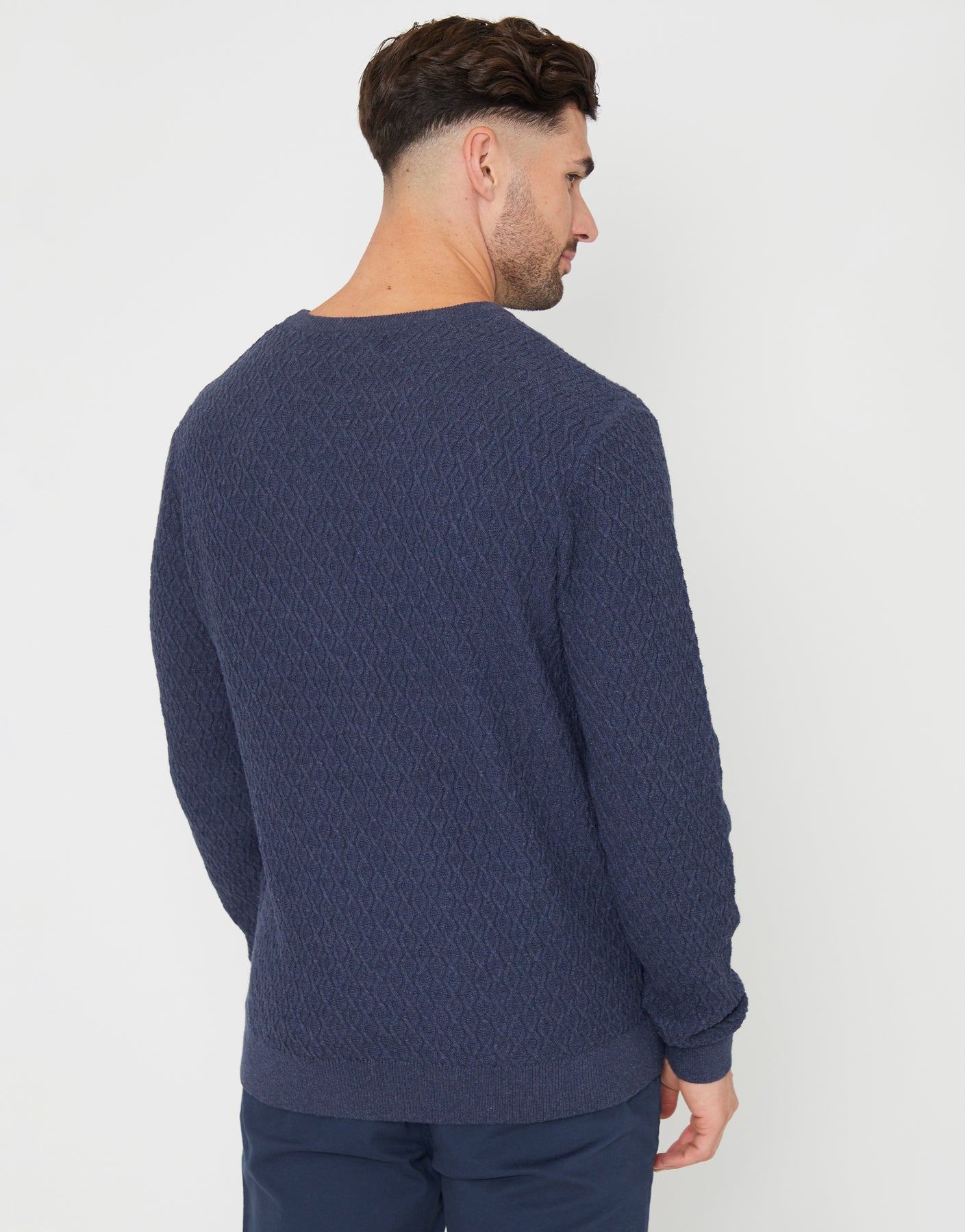 Denim Blue Mini Cable Knit Crew Neck Jumper
