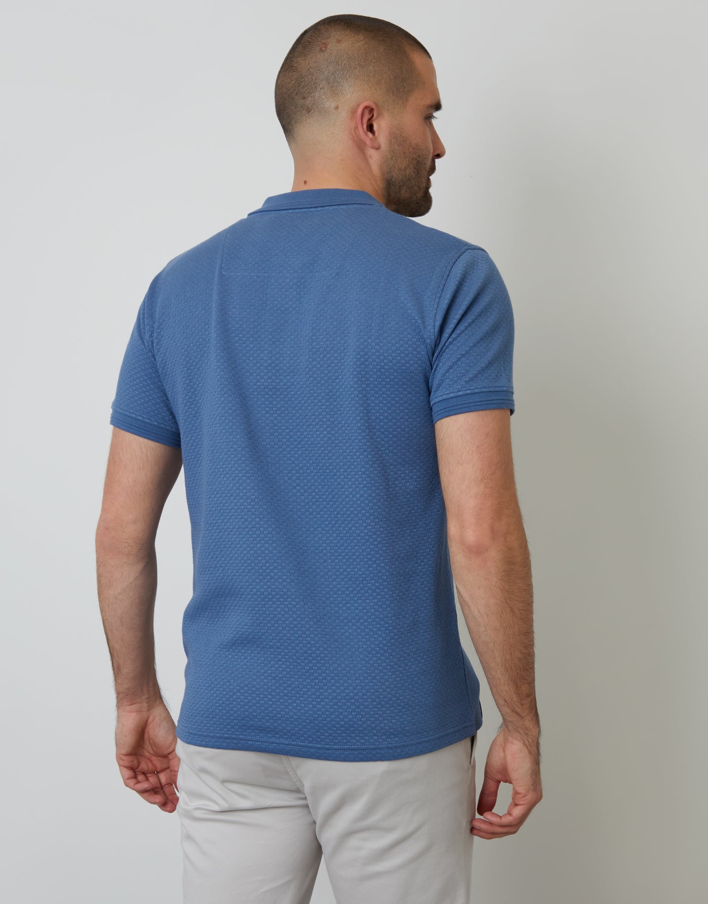 Denim Blue Textured Short Sleeve Polo Shirt