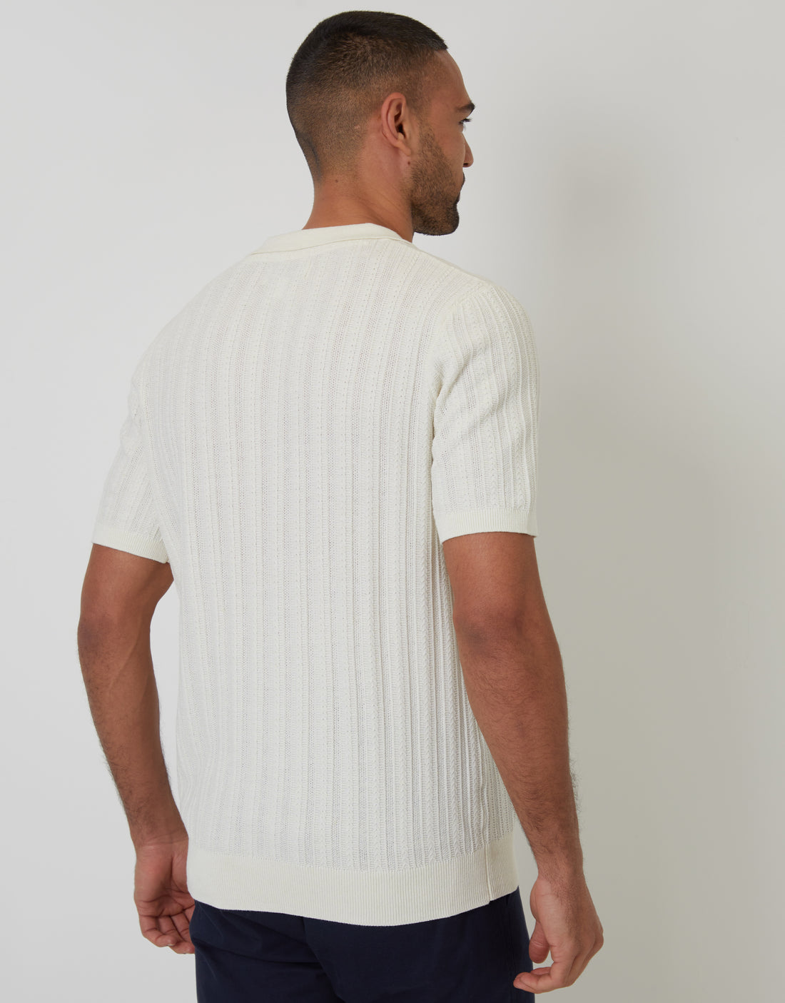 Complete your capsule wardrobe with our trophy neck textured knitted polo shirt.