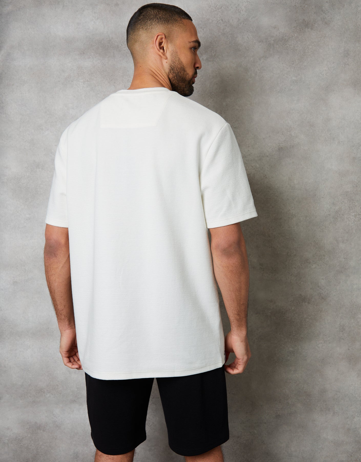 Ecru Textured Relaxed Fit T-Shirt