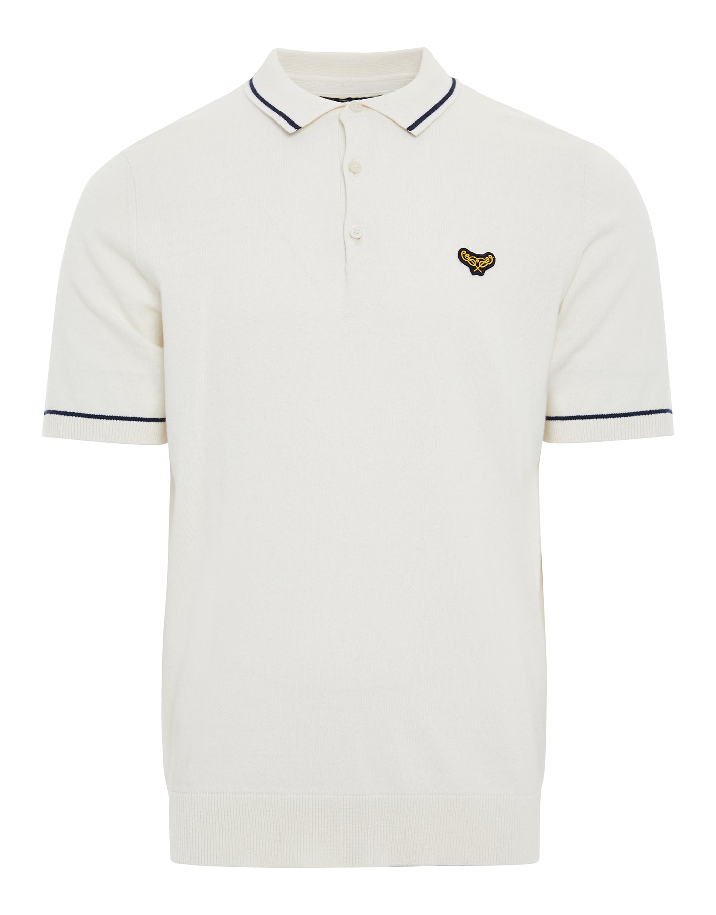 With an open revere collar fashioned with button up detail, this short sleeve knitted polo has small ribbed cuffs to the sleeve and a ribbed hem for comfort and ease.
