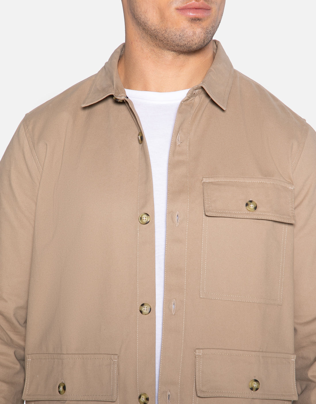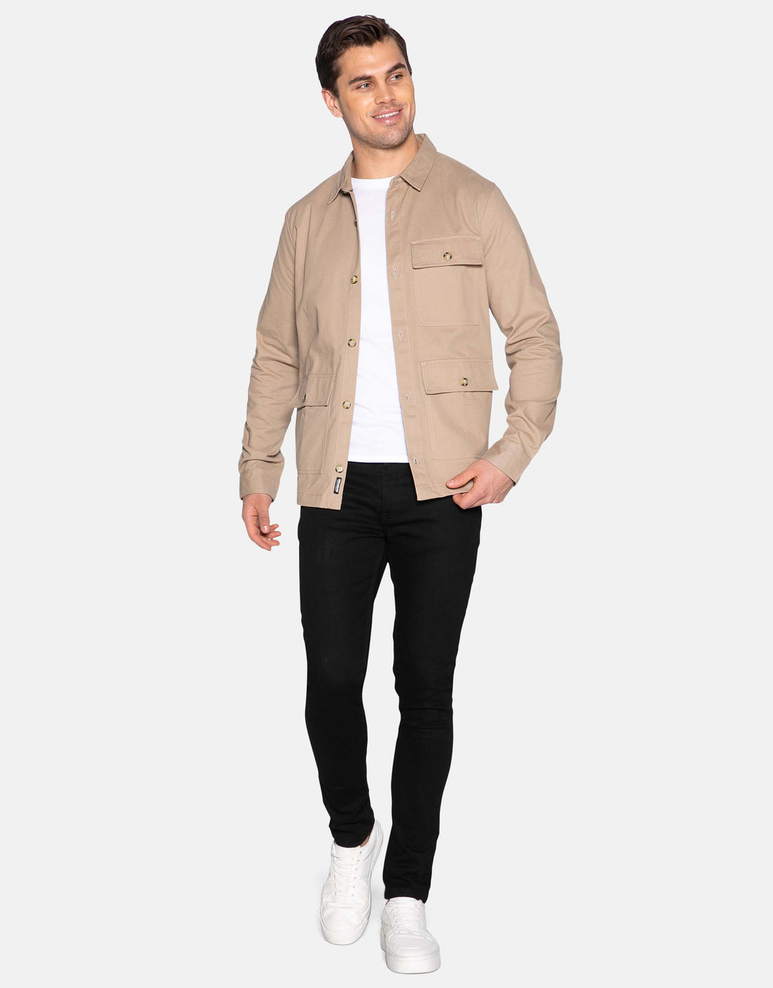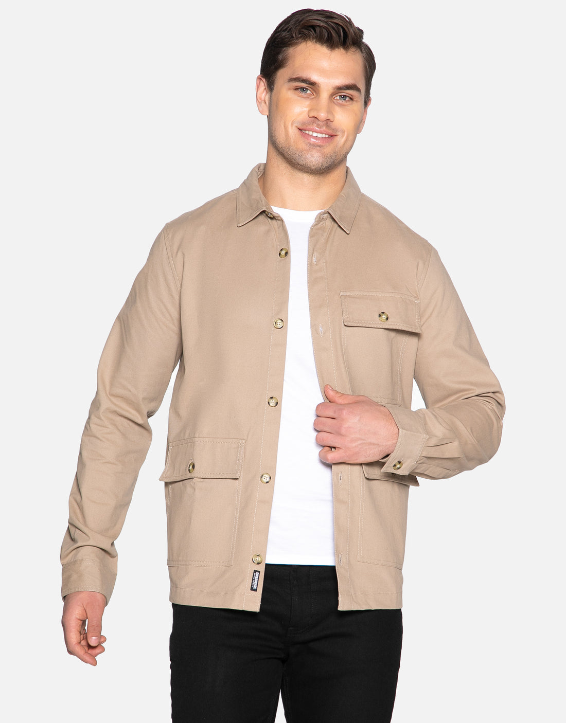This shacket from Threadbare is made from a cotton twill fabric and features a chest pocket and two front pockets with button fastening. Style with one of our t-shirts to create a layered look.