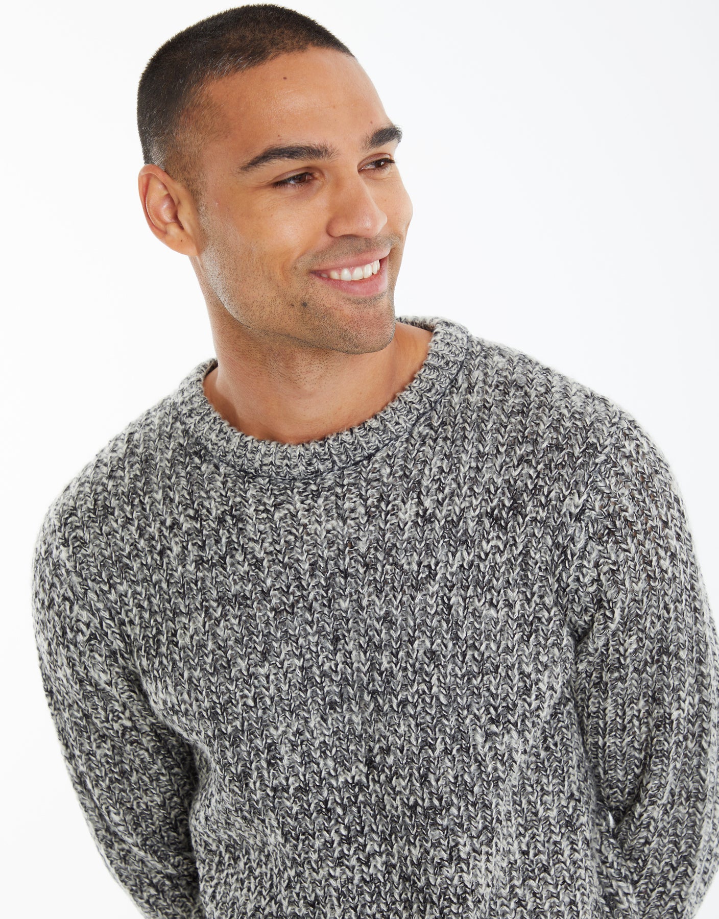 Made from a black and grey twist knitted acrylic, this jumper has ribbed cuff and hem for all day comfort.