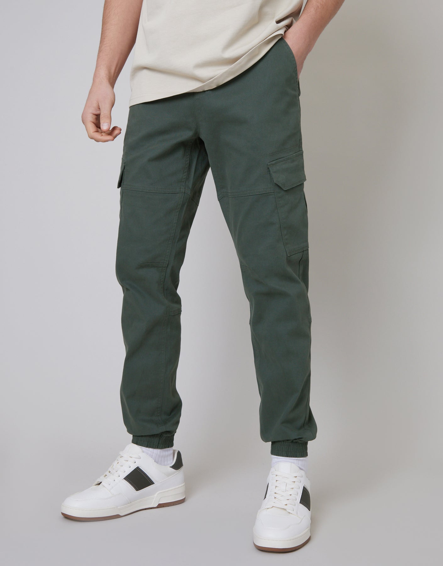 These jogger like trousers are the answer if you're after an alternative pair of trousers to complete your collection. With a snap fastening cargo pocket on each leg, two side pockets and two back flap pockets, you're fully kitted out. An elasticated waistband with drawcords and cuffed hem finish this easy-to-style pair.